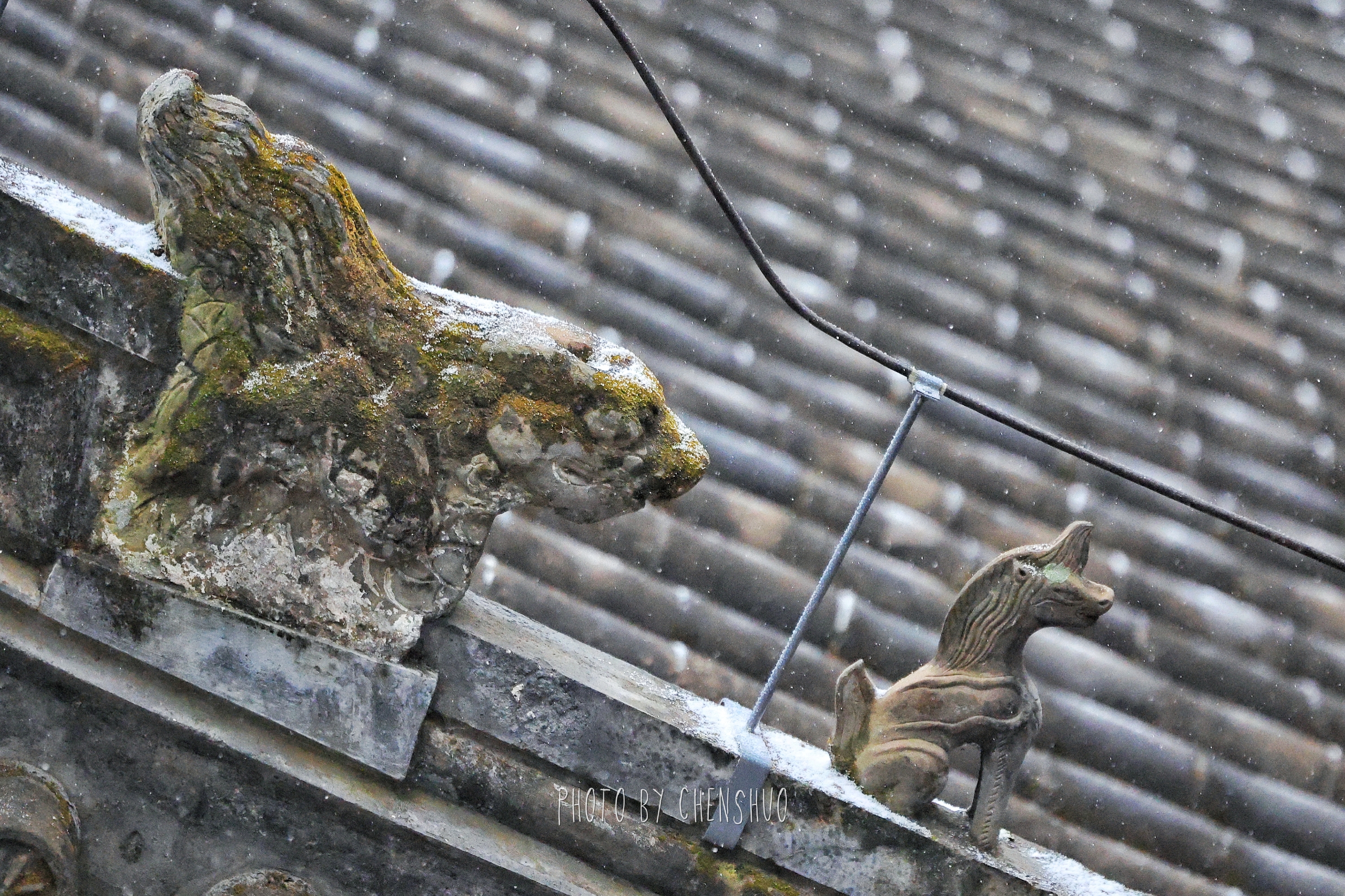 朱红院墙被白雪温柔包裹,飞檐翘角缀满绒雪,脊兽静立,风铃低哑,时光都在此刻放慢了脚步。青石板路上积着薄雪,踏上去咯吱作响。