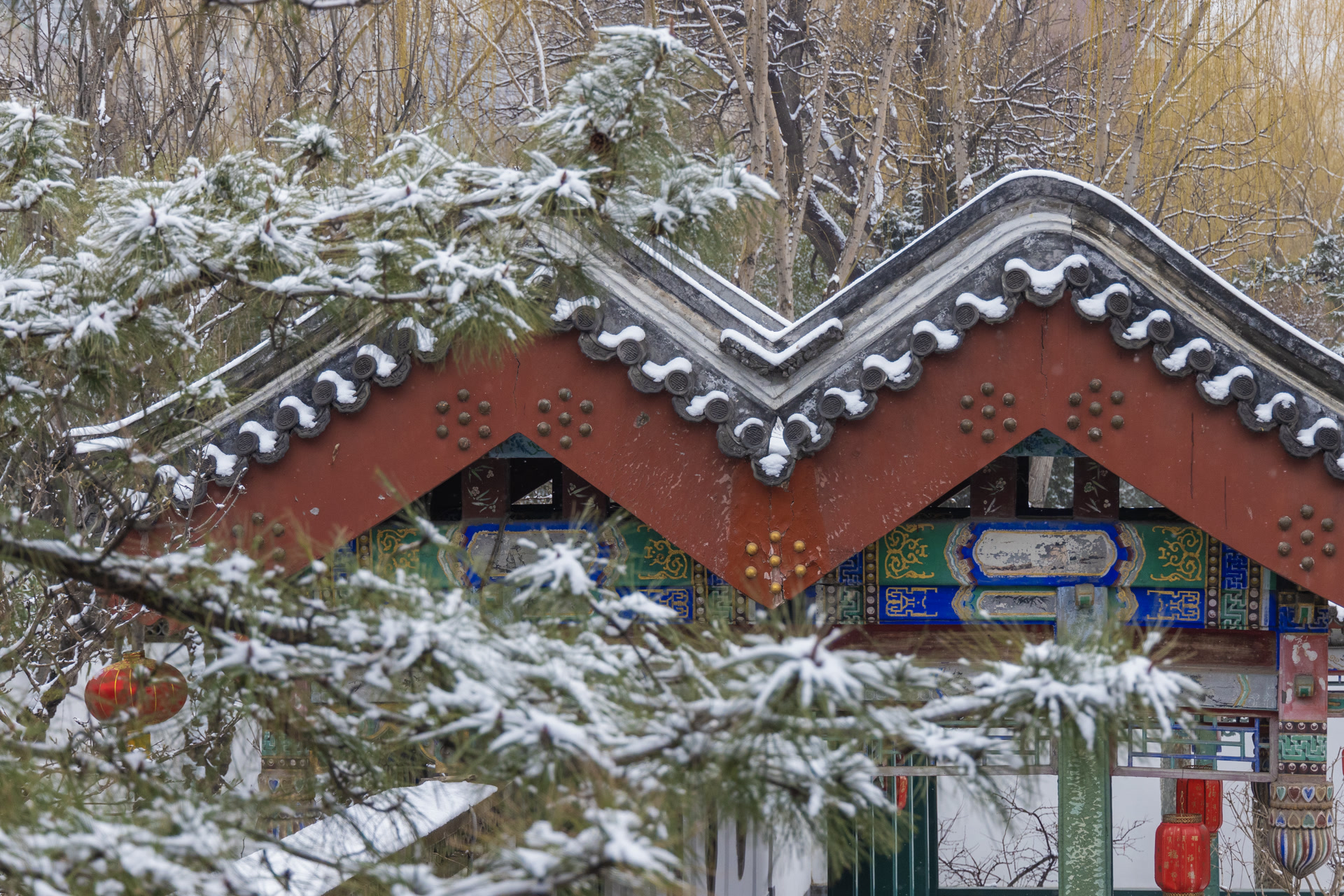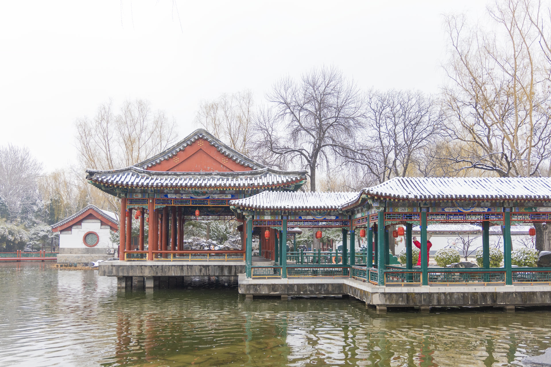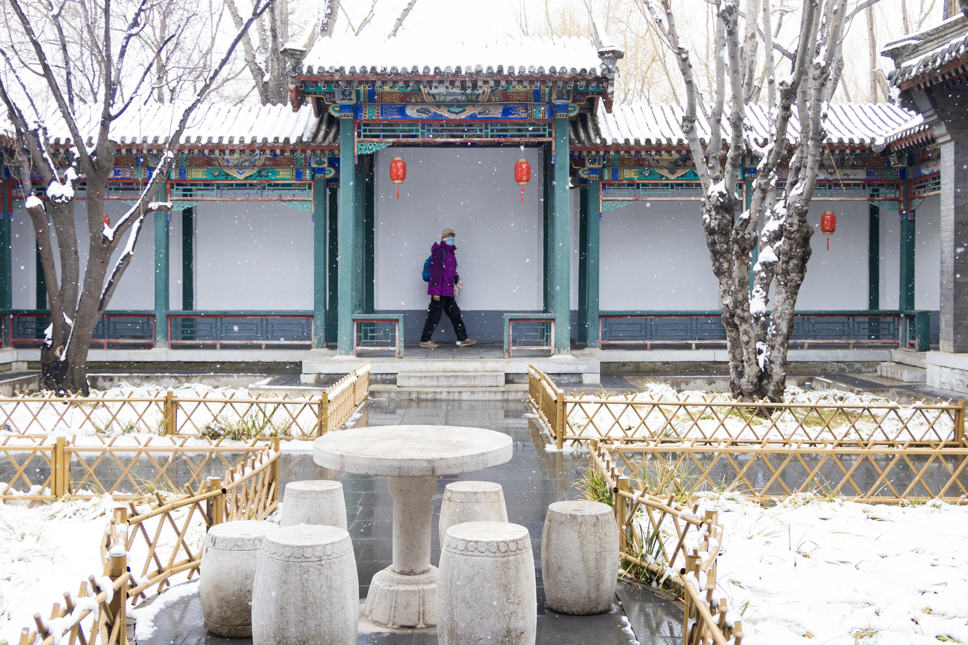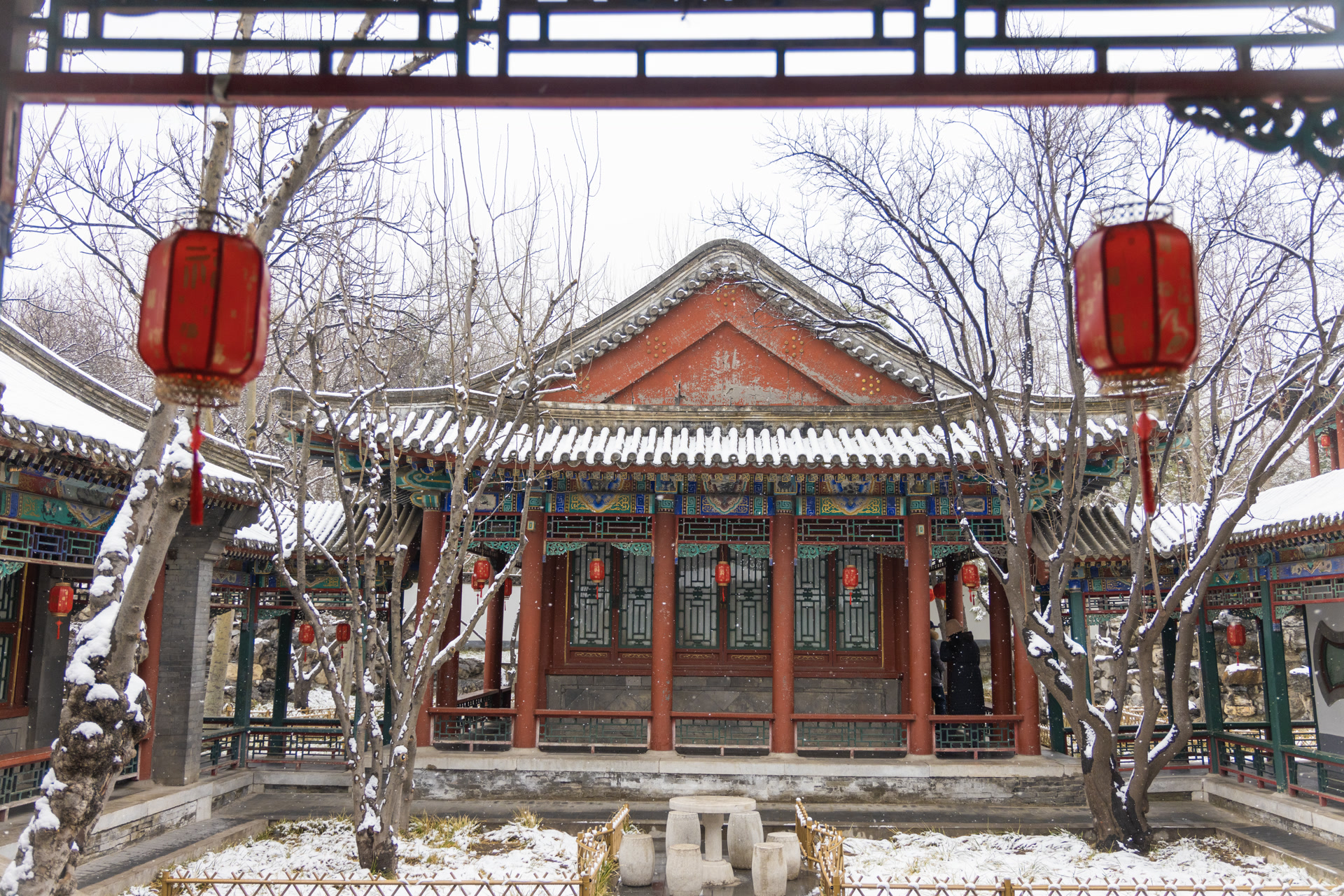 银装素裹的大观园,亭台楼阁覆雪如玉,雅致清幽。白雪