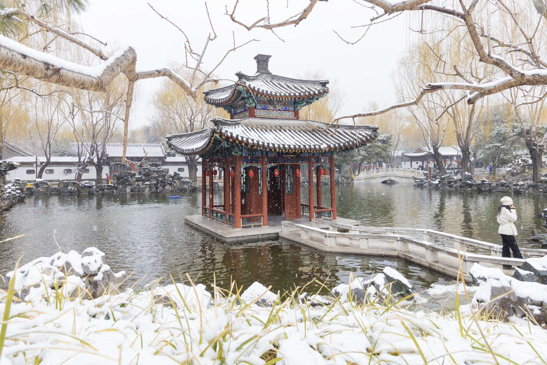 惊蛰邂逅春雪:大观园雪落亭台,清雅悠然