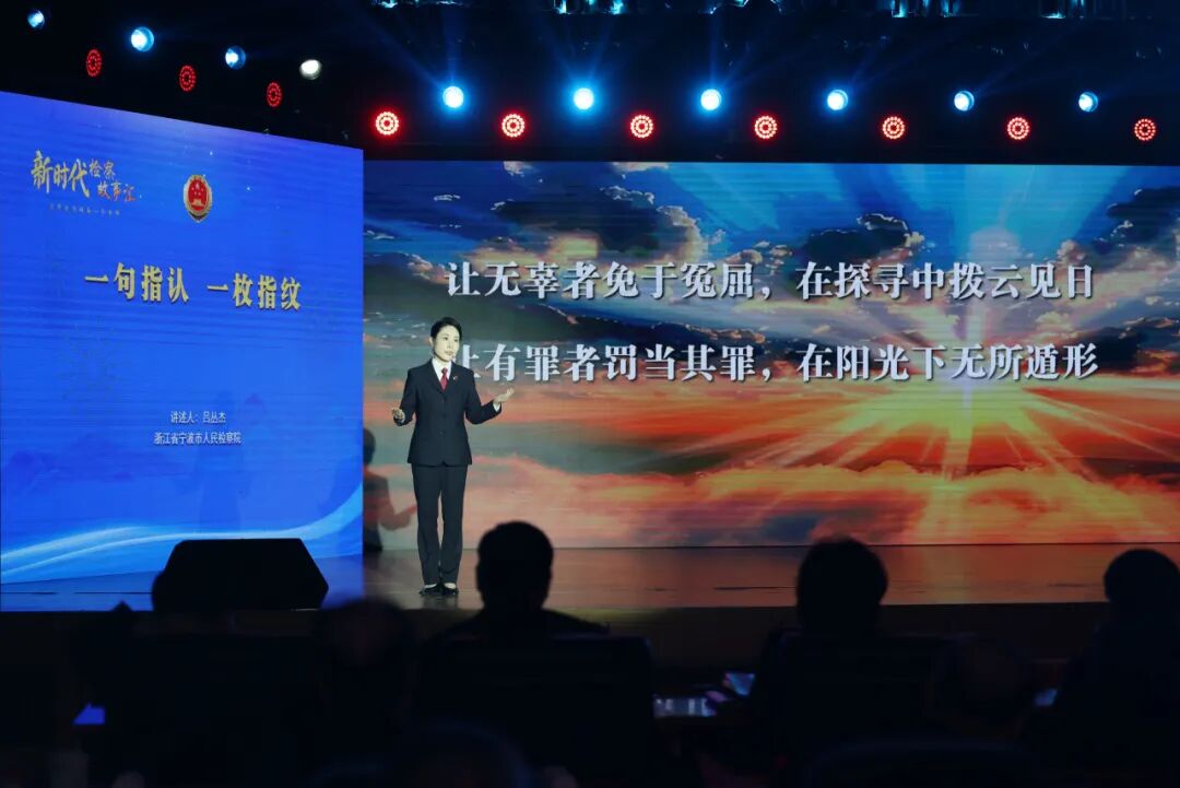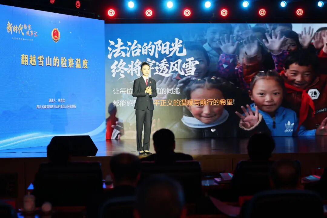 荣获“十佳检察办案故事”的检察机关代表在现场讲述。(滑动查看更多)