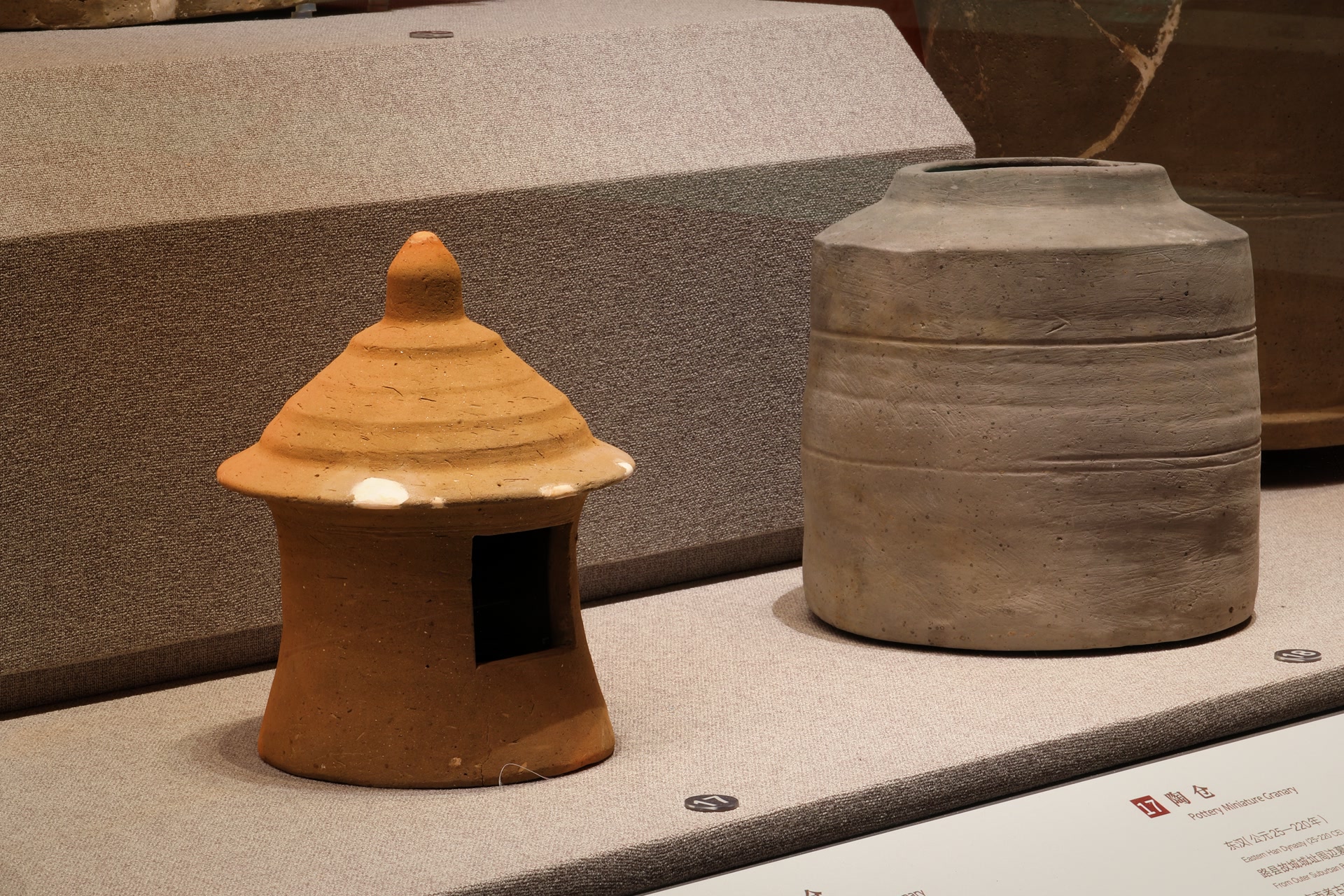 陶仓是汉代储粮礼制与民生智慧的缩影,作为随葬明器在汉代全国范围内中普遍出土。出土陶仓种类繁多,圆形、方形、楼阁形为常见形制。仓身设计兼顾密闭与通风,复刻了地面粮仓防潮、防蛀的实用功能。陶仓遍及不同等级墓葬,既是时人财富的象征,更承载着汉代「储粮备荒、以农固国」的治理逻辑。