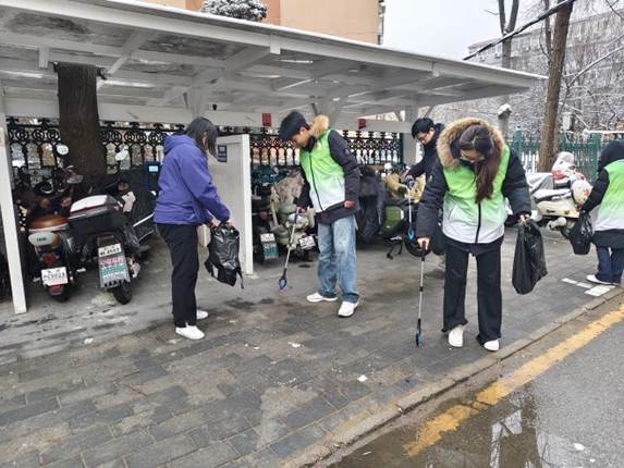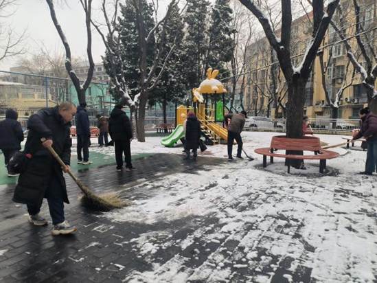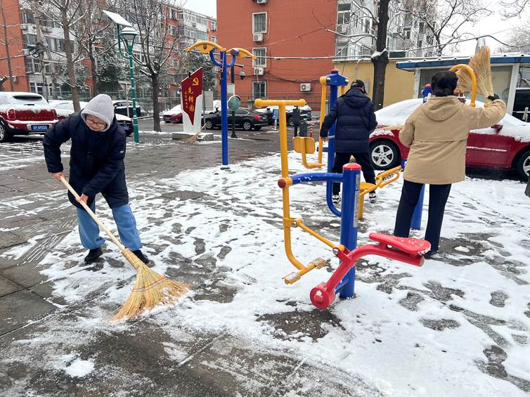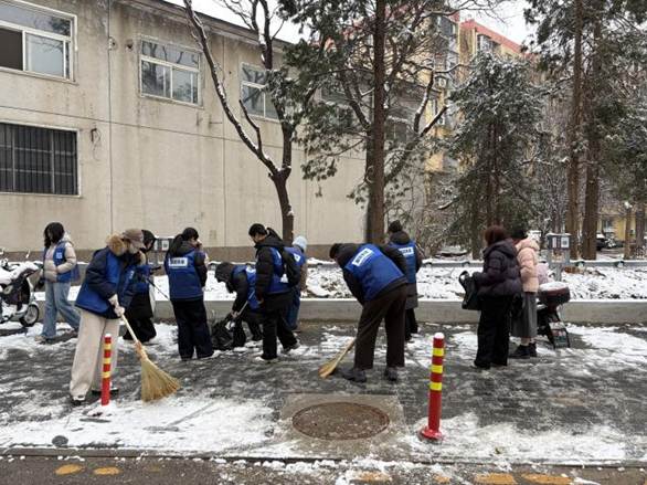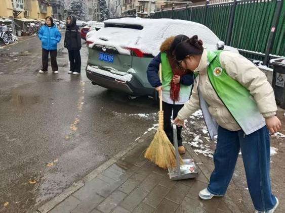 清晨,志愿者们便集结完毕,手持清洁工具,分头深入辖区绿地、主干道路、居民楼道等公共区域,开展环境清理及扫雪铲冰行动。大家分工协作、干劲十足,不放过任何一个卫生死角。寒风虽冽,人心却暖,那一抹抹跃动的“志愿红”,成为花南社区最亮丽的风景线。