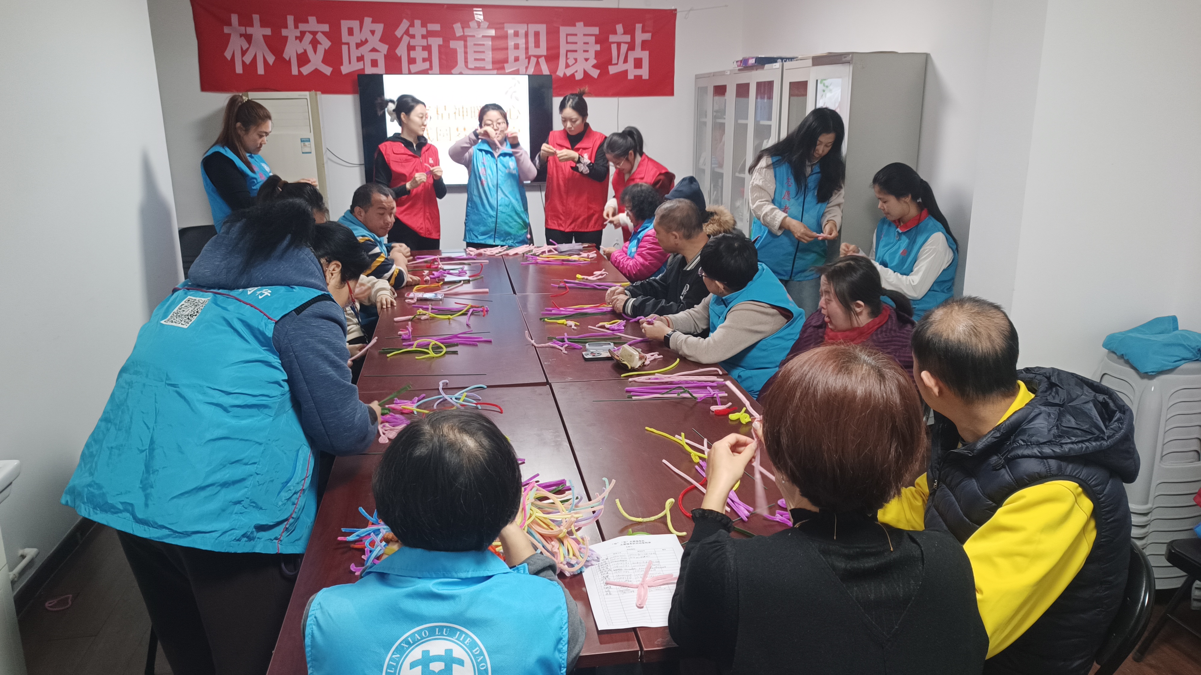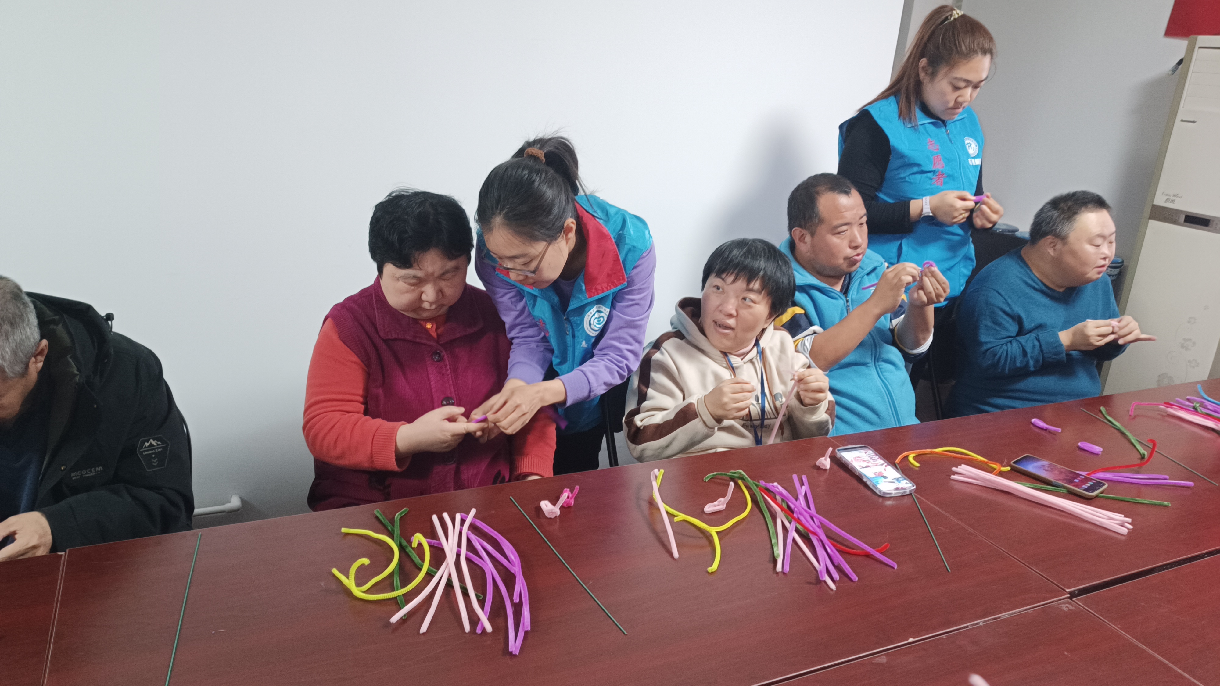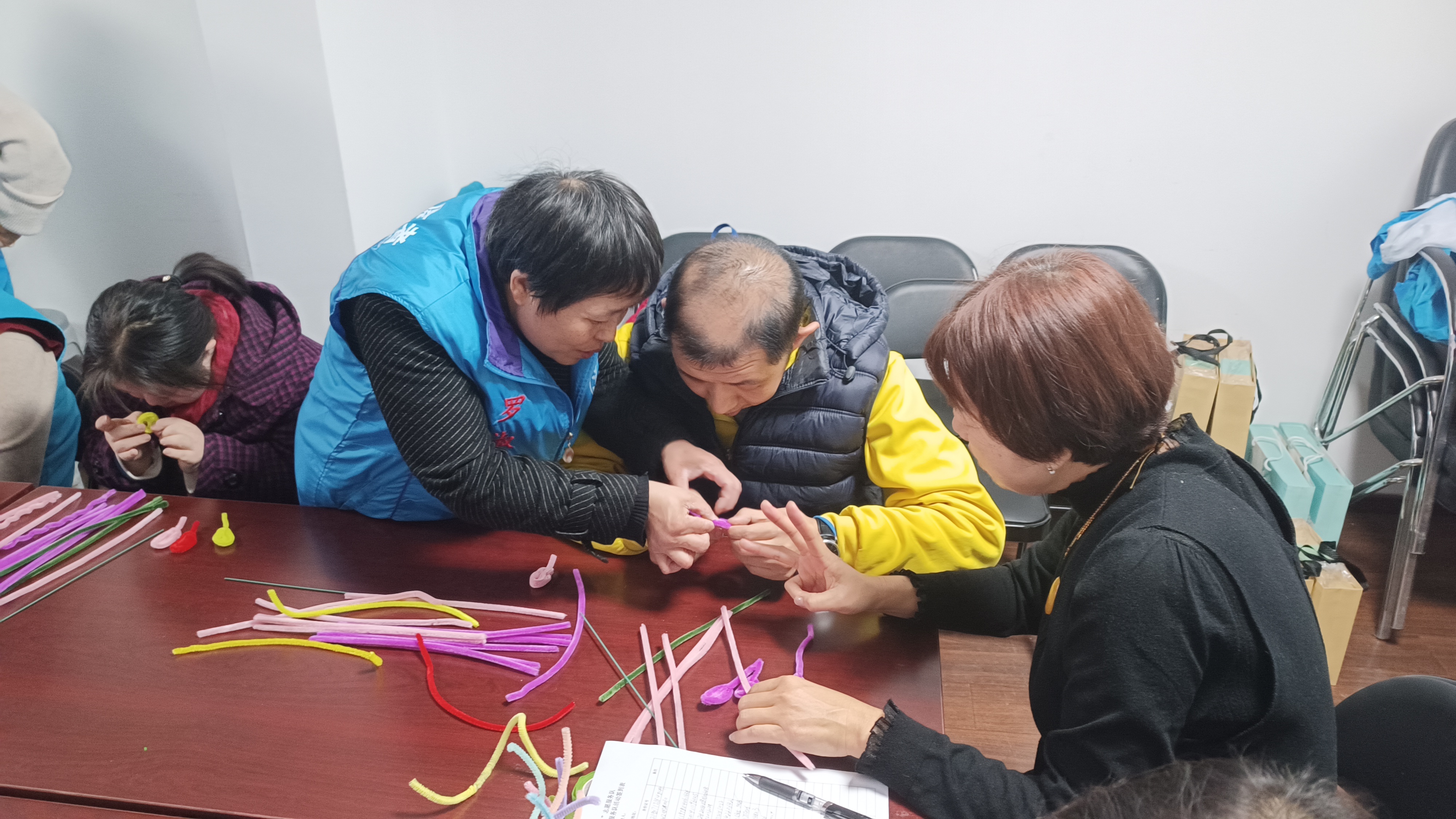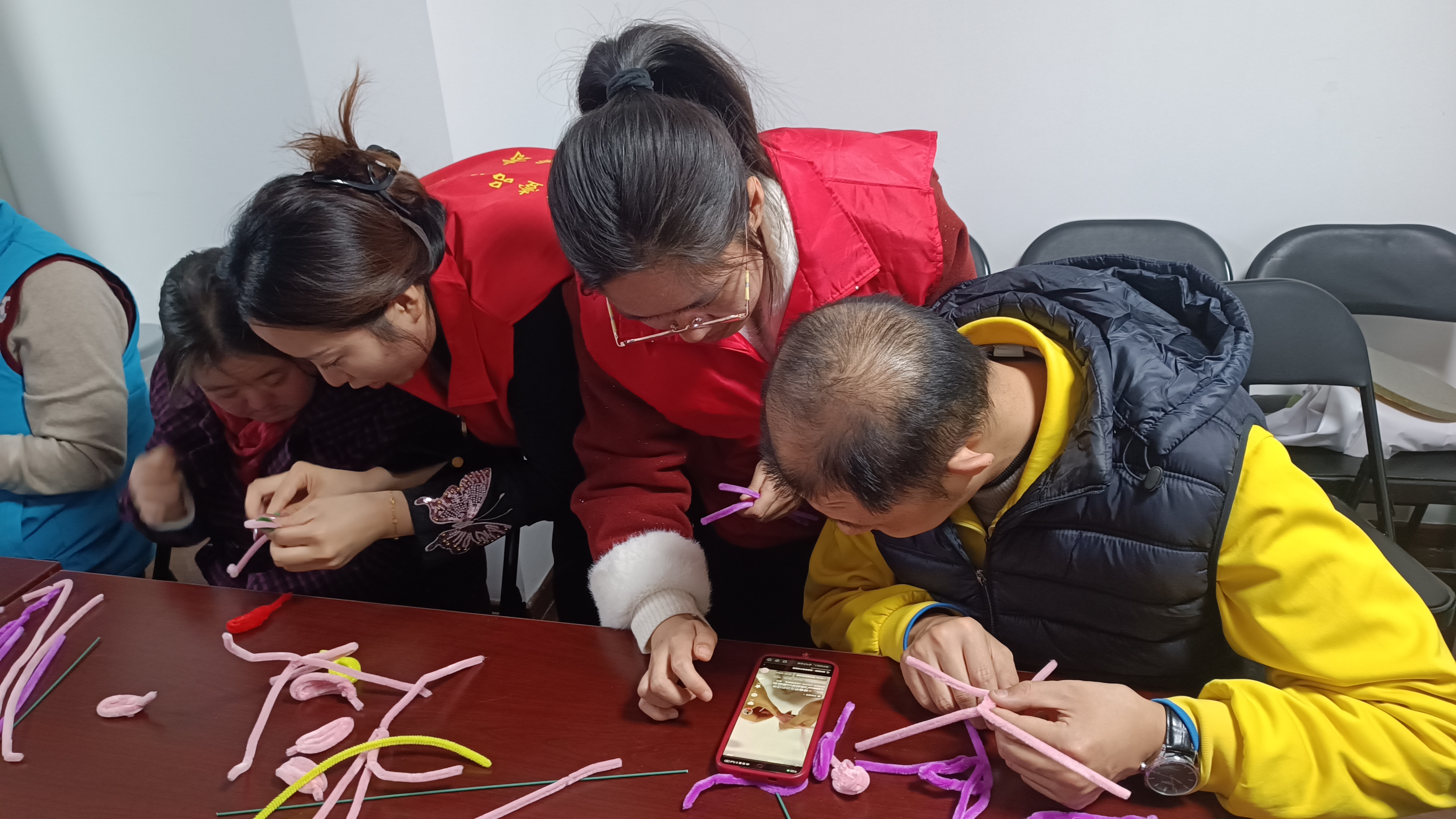 结合林校路街道温馨家园残障朋友的需求,精心策划了多元化、接地气的互动环节,让残障朋友在陪伴与互动中感受社会温情。志愿者们主动走近残障朋友,与他们围坐在一起,耐心细致地手把手指导,共同制作扭扭棒、彩纸手工。指尖翻飞间,一个个色彩鲜艳、形态可爱的手工制品逐渐成型,现场欢声笑语不断,陌生感悄然消散,心与心的距离在互动中不断拉近,每一张笑脸都承载着满满的幸福感。