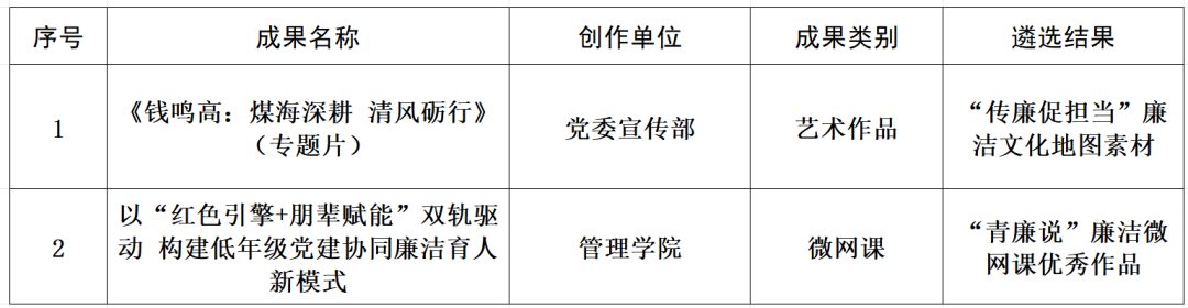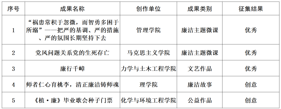 入选教育部第十届高校廉洁教育系列活动优秀作品成果