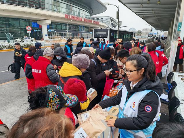 更令人感动的是,志愿者们还推着载有热水壶和暖宝宝的小推车穿梭在候车区域。“同志,喝杯热水暖暖身子吧!”“小朋友,贴个暖宝宝就不冷啦!”一声声问候,一杯杯热水,一片片暖贴,送到了旅客手中,更暖到了心坎里。一位准备返回山东老家的务工人员捧着热腾腾的姜茶,眼角泛起笑意:“出门在外,赶上这么大的雪,本来心里挺没底的。没想到在北京南站,不仅有人帮我指路,还有热茶喝、有暖宝宝用,就像家里人一样。”