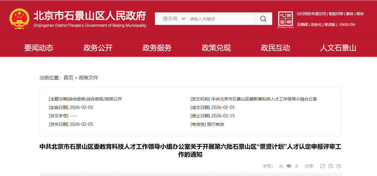 来源:石景山人才 北京市石景山区人民政府网
