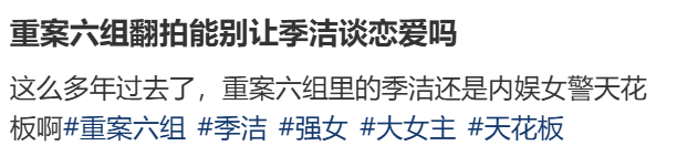 王茜饰演的季洁因干练果决、刚柔并济的刑警形象深入人心,被观众视为"六组灵魂"。超过80%的讨论认为新版演员难以复刻其神韵,尤其是角色特有的职业质感和生活烟火气。