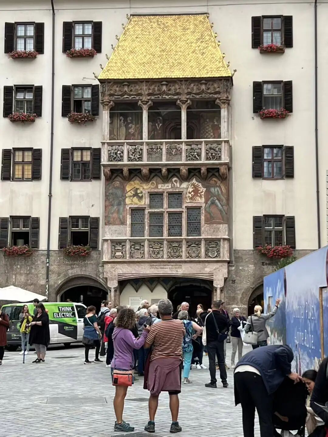 清晨,我爬上市中心的塔尖,在那里,霍夫堡王宫的钟楼与旁边黄金屋顶的阳台尽收眼底。这个金碧辉煌的阳台是为了庆祝马克西米利安一世的婚礼而建:当年他会在阳台上观看游行与节庆,享受平民的瞻仰;而现在正瞻仰着阳台的是熙来攘往的外国游客。
