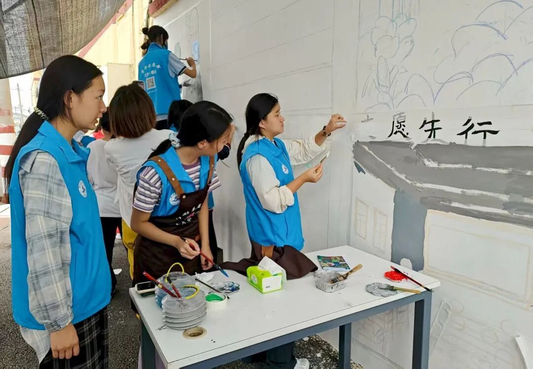 青年参与南彩镇南彩村文化墙绘制志愿服务。