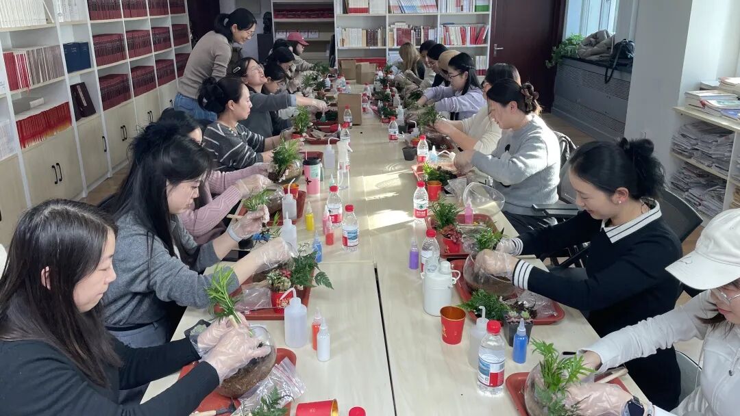 和女教职工一起参加活动