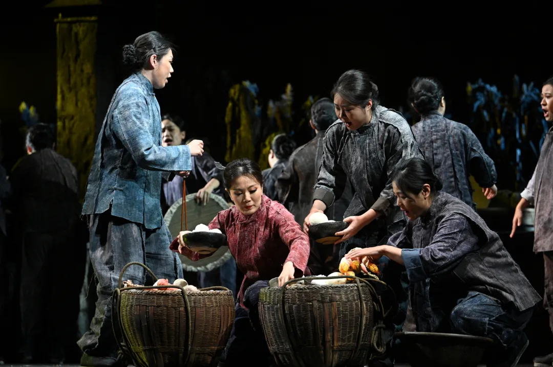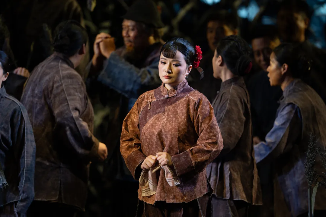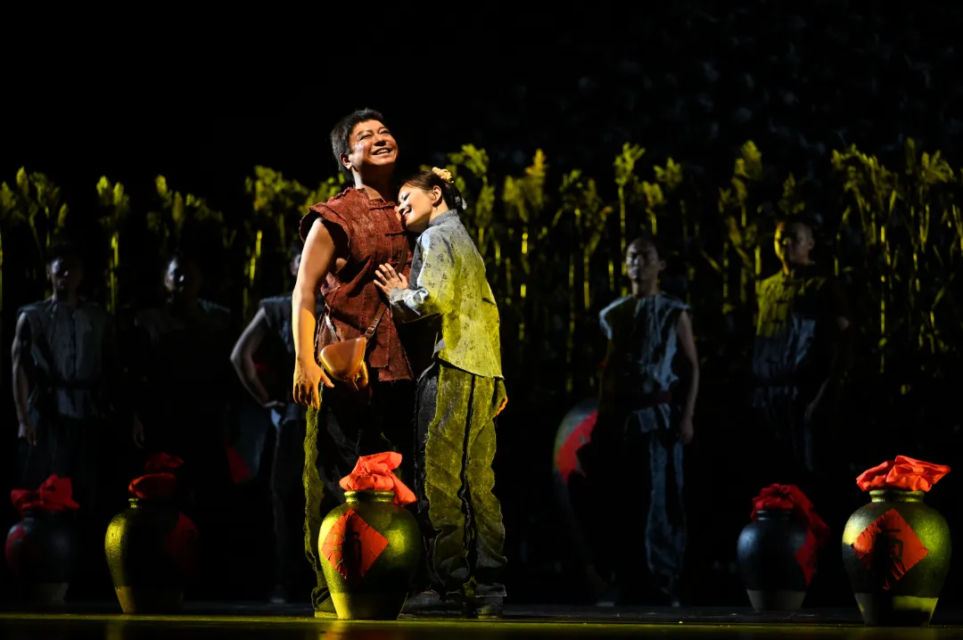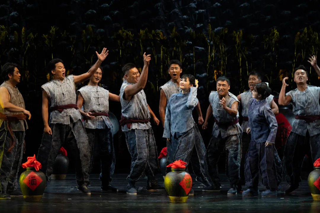 除了九儿,歌剧《红高粱》中还有许多动人的女性形象——倾心刘罗汉多年的凤仙,当鬼子来袭,她毫不犹豫用身体挡住子弹,将“生”的机会留给爱人。用一粥一饭支撑起前线的妇女们,她们不曾握枪,不曾呐喊,但她们也是战士,她们用双手、用脊梁,共同写下了“柔肩亦能担道义”的女性诗篇。