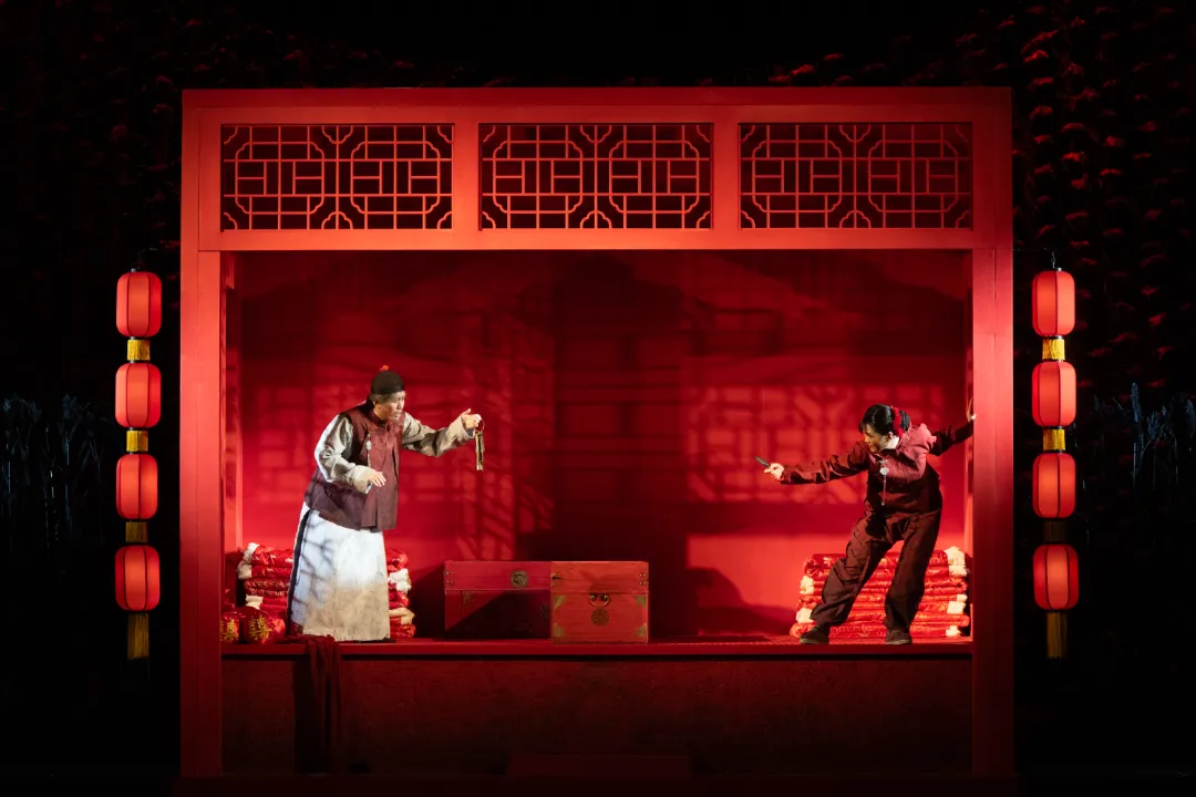在高粱地里,面对余占鳌炽热的表白,九儿唱出“你是我的新郎,我是你的新娘”。层层推进的二重唱,将女性在爱情面前真情流露的沉醉与交付,渲染得动人心魄。她是女儿、是妻子、是母亲。在生命的最后时刻,她唱道:“我爱自由,爱自己,爱美酒,我爱我的男人、我的孩子、我的家园。”这是一个普通女性最朴素的心声,九儿不想死,她想活。但当大义需要她时,她没有犹豫,把“我”字放在了后面,把家国放在最前。