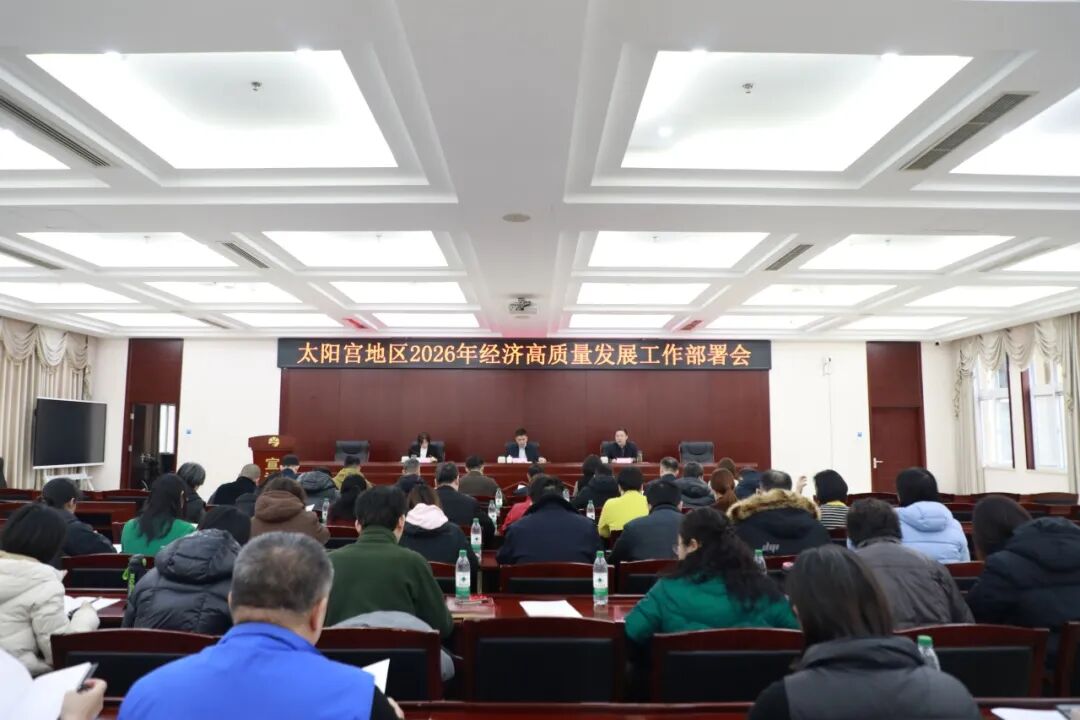 日前,太阳宫地区召开2026年经济高质量发展工作部署会。地区领导班子成员,七室一委副主任,综合行政执法队常务副队长,一站四中心主任,乡联社社长,税务所所长、市场所所长及各社区书记参加会议。