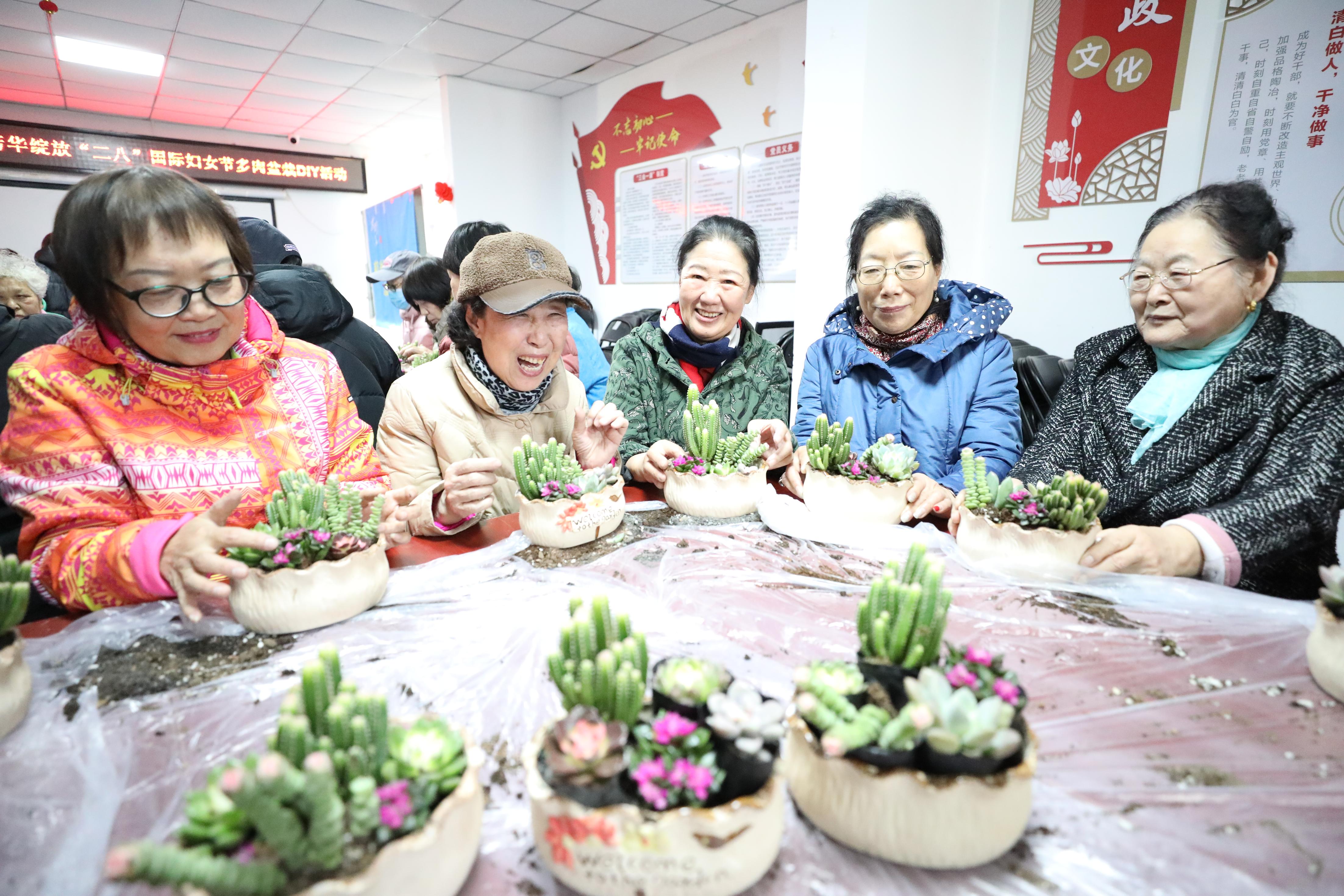 为庆祝“三八”国际妇女节,丰富社区女性精神文化生活,3月6日,南苑街道诚苑社区精心组织了一场以“春意盎然 指尖微景”为主题的多肉盆栽种植活动,吸引众多社区女性居民踊跃参与。