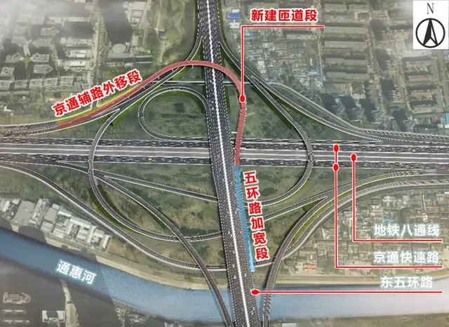 为积极回应群众期盼,远通桥立交节点改造工程项目“应需而生”,自投运以来,已实现东五环路与京通快速路南向西方向的直接连通,也为广渠路与京通快速路的互联互通搭建了便捷桥梁。据测算,该节点缩短绕行距离约5.6公里,节省通行时间约15分钟,有效缓解了双桥路、京通快速路辅路的交通压力,进一步优化了广渠快速路、京哈高速等东部路网的整体运行效率,便利了周边居民通勤出行。