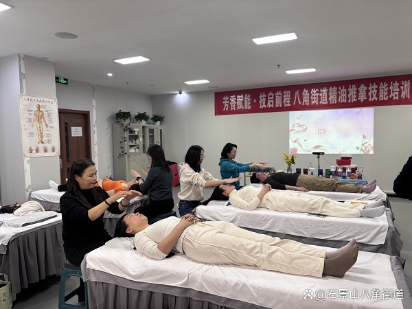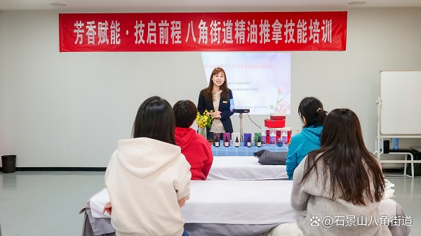 为进一步提升女性重点就业群体的职业技能水平,拓宽就业与灵活就业渠道,助力实现自主增收,八角街道紧扣“就业有岗位、创业有支撑、技能有提升、服务有保障”的工作目标,精心组织开展了以“芳香赋能·技启前程”为主题的精油推拿技能培训公开体验课,为辖区女性送上“政策礼包+技能指导+资源对接”三重服务。
