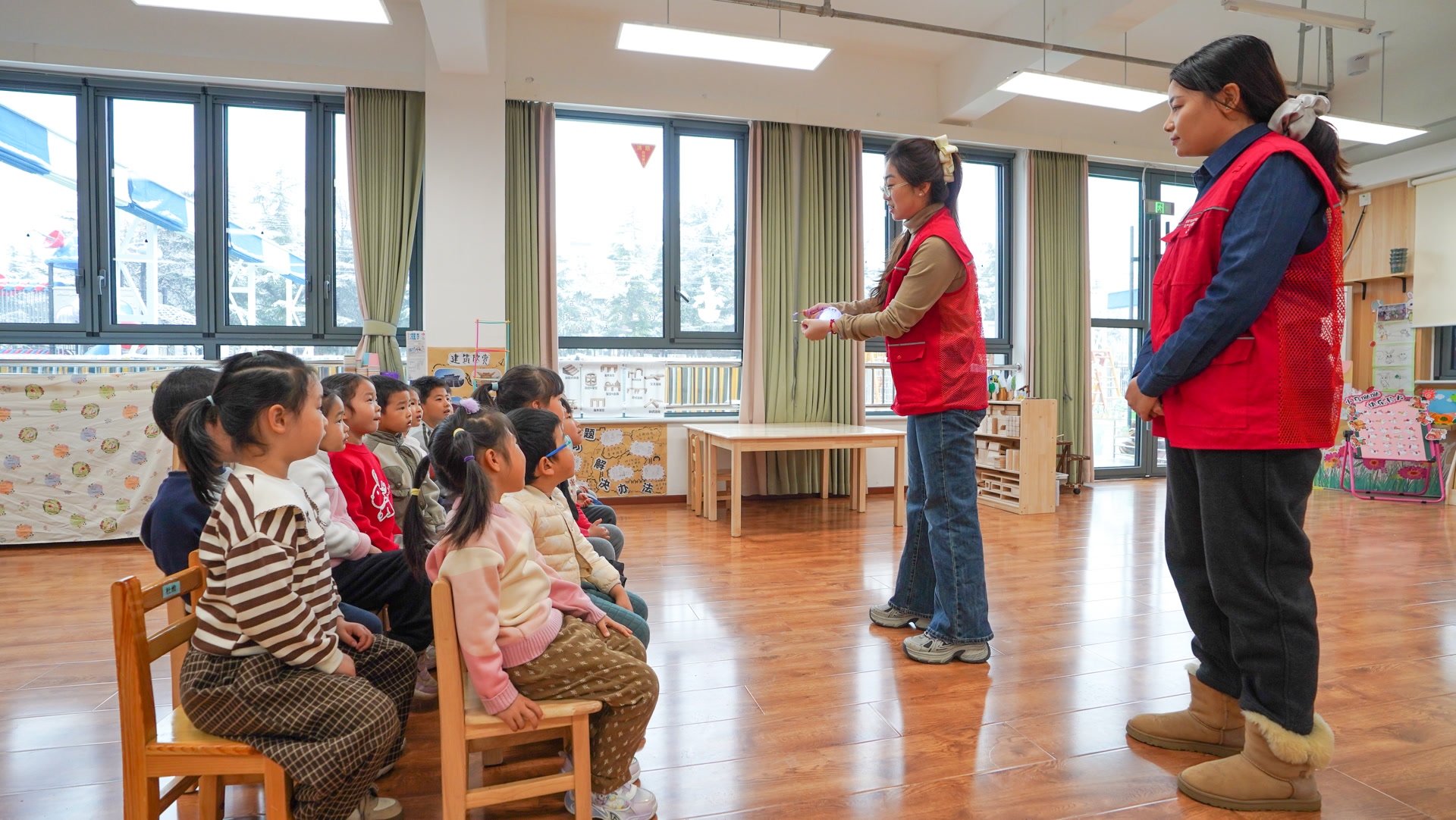 “老师,湿的手摸插座会怎么样呀?”“我知道!会触电!”课堂上,孩子们稚嫩的提问和响亮的回答此起彼伏。服务队队员化身亲切的电力老师,结合幼儿的认知特点,摒弃枯燥的理论讲解,用生动活泼的语言搭配趣味动画短片,把抽象的用电知识转化为易懂的生活常识。队员们围绕“湿手不碰插座”“不拉扯电线”“识别有电危险标识”等核心内容展开讲解,还通过“导电材料辨别”“摩擦生电”的简单实验配合着一个个贴近生活的问题,与孩子们亲密互动,引得孩子们踊跃参与、大声回答,现场气氛十分活跃。队员们还为孩子们发放了笔袋和笔记本等小文具,鼓励孩子们争当“家庭安全用电小卫士”,把学到的知识分享给爸爸妈妈,带动全家重视用电安全。孩子们纷纷表示要把安全用电知识记牢,做守护家人的小帮手。