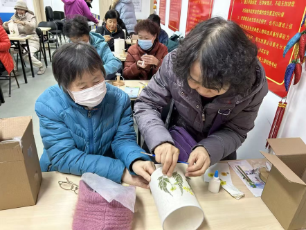 “张姐,你看我这个花瓣贴歪了没有?”“不歪不歪,你这样搭配反而更有层次感,好看!”为展现退休女性的优雅风采,程庄路社区、东安街社区分别开展了别开生面的手工台灯制作活动。