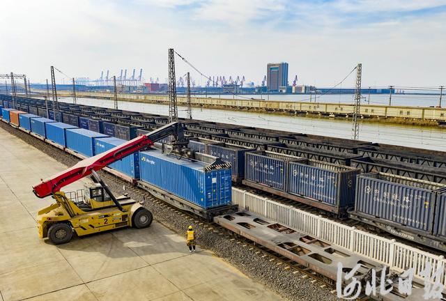 2月16日,黄骅港始发的中欧班列正在进行集装箱装载作业。河北日报记者 张昊摄