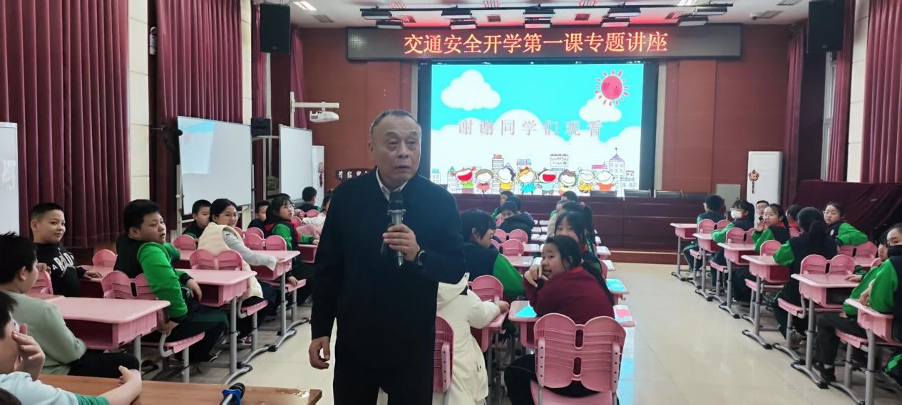 (图为丰台区老科协关工委邀请柳实教授为首经贸附属小学上交通安全课)