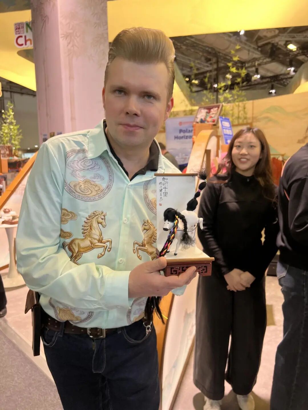 走进山东展台,参展商和专业买家感受到的不是传统的静态陈列,而是一场五感齐开的文化邂逅。马年文创区人气高涨,网红爆款“马彪彪”生肖主题文创将传统民俗与现代美学巧妙融合,吸引众多旅行商驻足端详,不少人饶有兴致地亲手尝试给“马彪彪”编辫子。展台上同时陈列的潍坊风筝、青岛啤酒、琉璃摆件等传统好物,与时尚可爱的“马彪彪”相映成趣,共同呈现齐鲁匠心的传承与创新。这些承载山东文化符号的文创产品,成为海外旅行商了解山东文旅IP的生动窗口。
