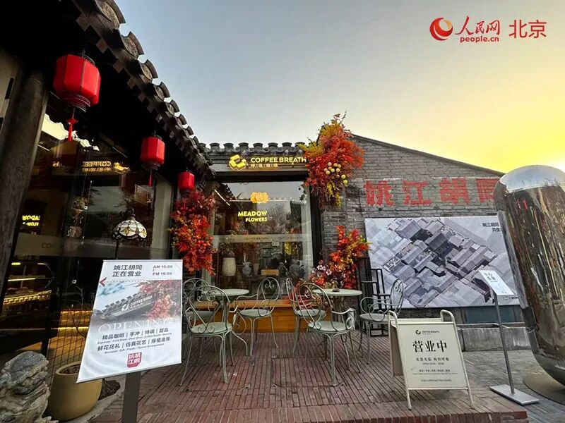 姚江胡同既保留了老北京的建筑风貌,又融入现代时尚的气息。咖啡厅、花艺店等店铺各有特色。