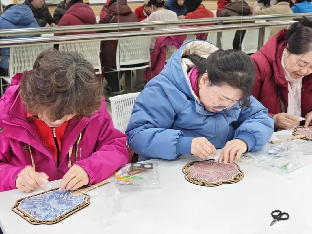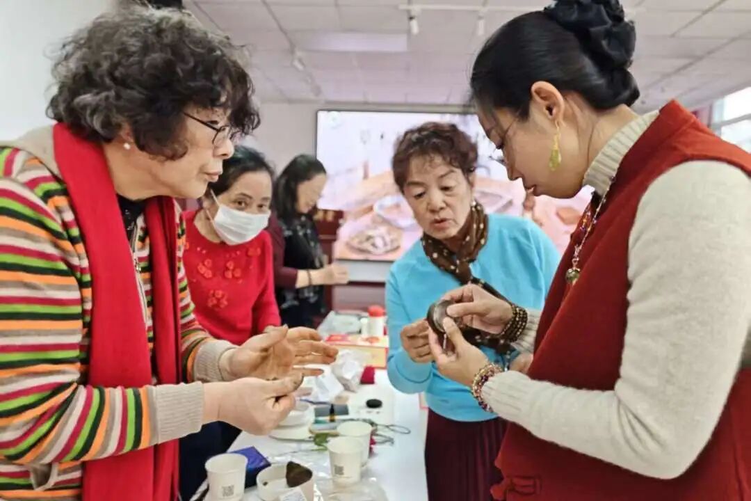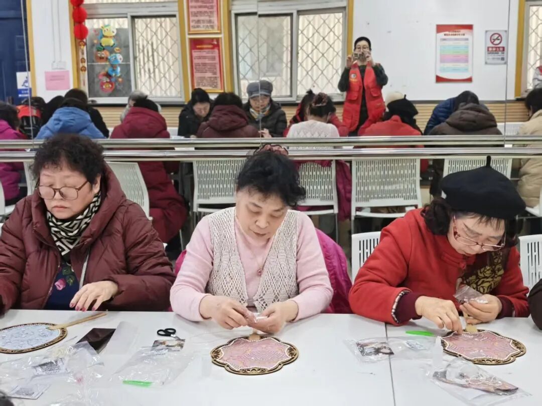 在十字口社区的宋锦挂饰制作现场,大家在老师的指导下精心缝制、相互交流,一件件色彩雅致的挂饰既是节日惊喜,更承载着对美好生活的期盼。