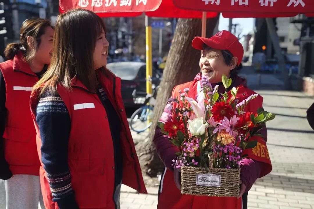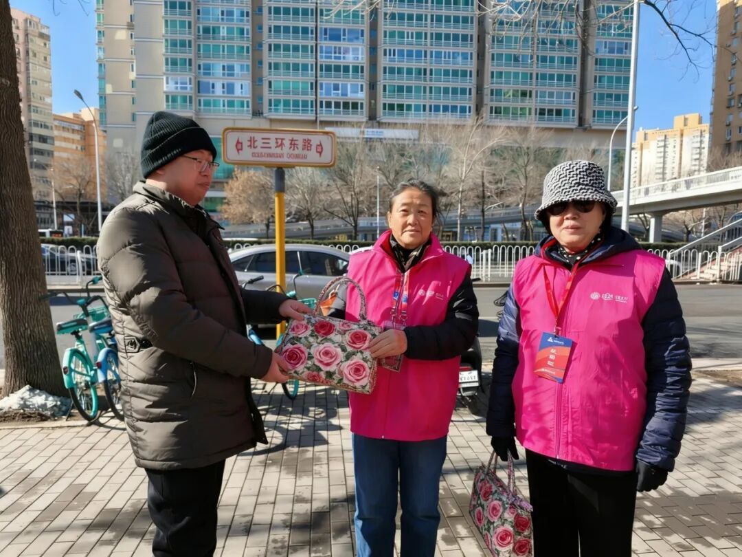 芍药居一社区、芍药居四社区、芍药居七社区、十字口社区等多个社区开展巾帼志愿者慰问活动,社工、青少年志愿者及企业职工将一束束娇艳的鲜花和节日慰问品送到正在两会执勤岗上的巾帼志愿者手中。