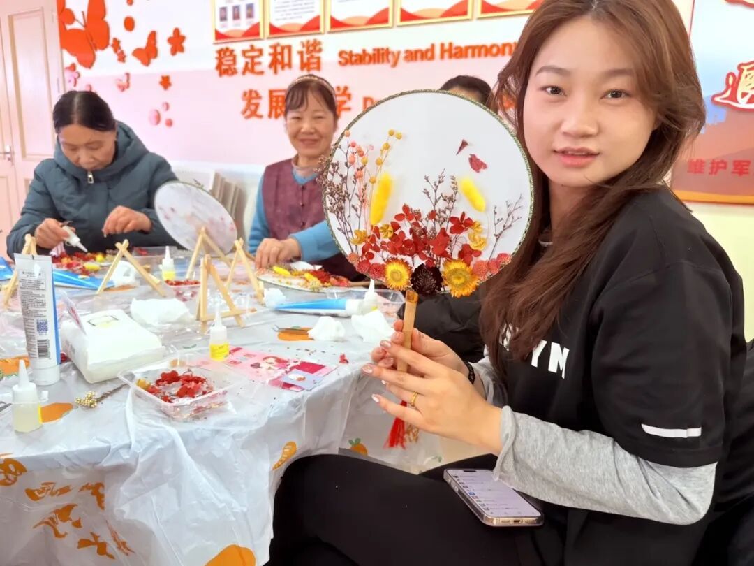 夏家园社区的永生花团扇制作,现场20余位单位女职工欢聚一堂,选花、搭配、粘贴,用一把把独具匠心的团扇,传递着节日祝福。
