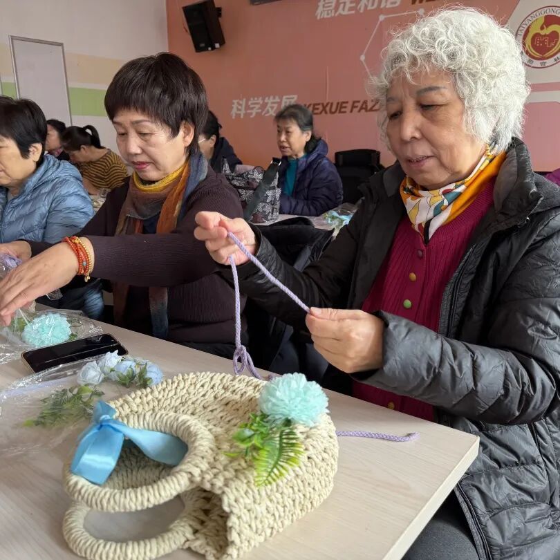 在太阳宫社区“指尖春意,‘包’你欢喜”,手工包制作活动中,大家鲜花与竹编碰撞出独特美感,让温暖与美好留在心间。
