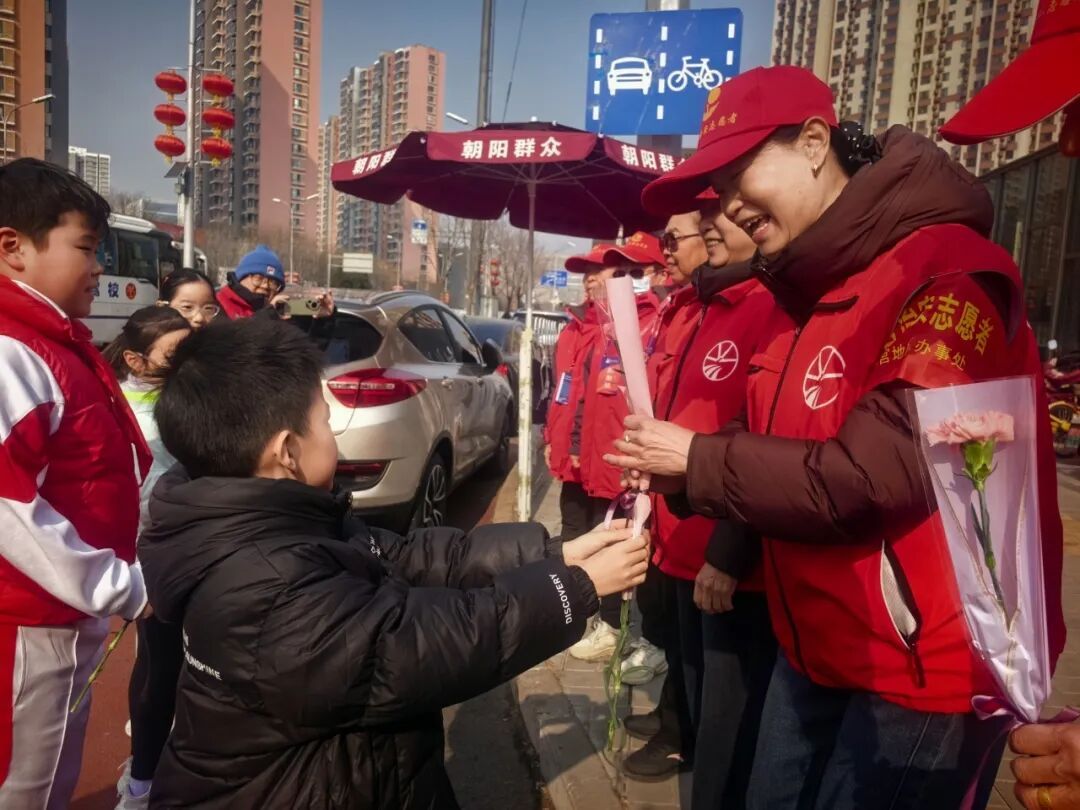 “节日快乐,辛苦了!”一声声问候,让春日的太阳宫街头格外温暖