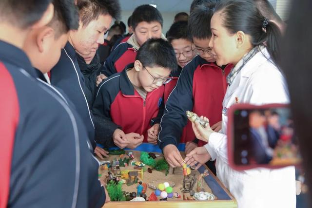 沙盘体验区,同学们在心理医生指导下,用沙具组合诉说情绪,释放压力。