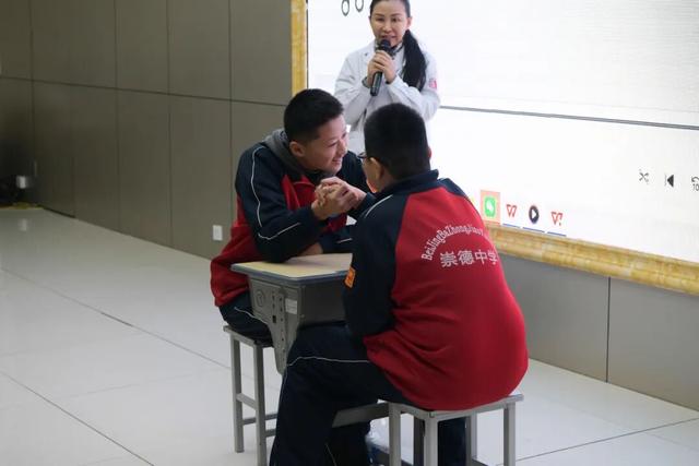 心理课堂上,同学们通过掰手腕学习如何释放压力