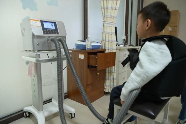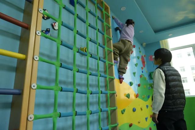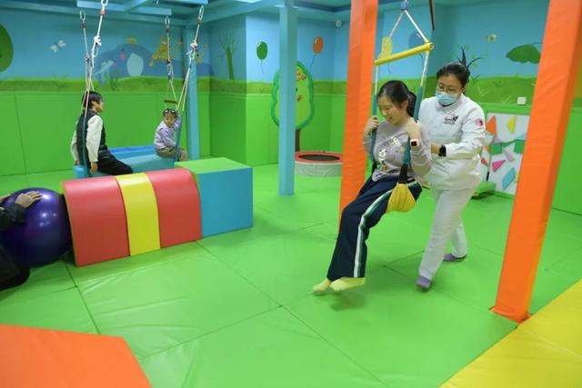 患儿在感统训练室内进行康复训练