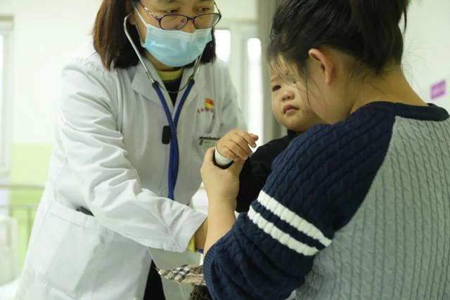 医生在病房为患儿做检查