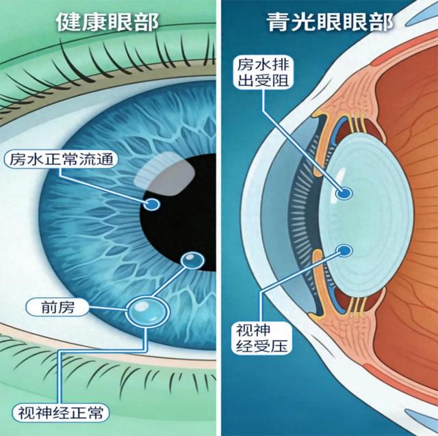 ·发病机制:眼内房水排出受阻,导致眼压升高,压迫视神经,造成视野缺损、视力下降,最终可能失明。