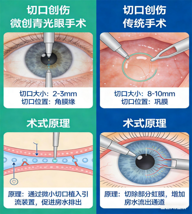 传统青光眼手术(如小梁切除术)需要在眼球表面制作较大切口,创伤大、恢复慢,且易出现滤过泡渗漏、感染、瘢痕化等并发症,让不少患者望而却步。