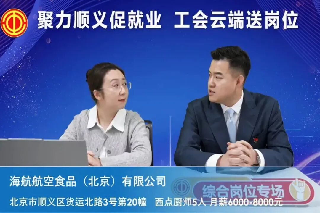 海航航空食品(北京)有限公司主营业务涵盖航空配餐生产、配送及配套服务保障,此次招聘带来了冷餐厨师、西点厨师等5个工作岗位,提供26个就业名额。企业为员工提供多重保障,包括免费工作餐、家属医疗资助、员工商业补充医疗保险等。海航航空食品(北京)有限公司副总裁孙鑫鹏详细介绍了岗位需求及福利待遇。“我们希望通过这次直播,招到符合企业发展需求的优秀员工。”孙鑫鹏说。