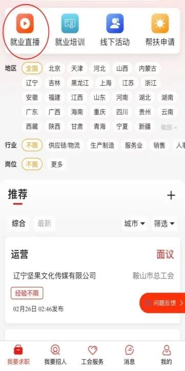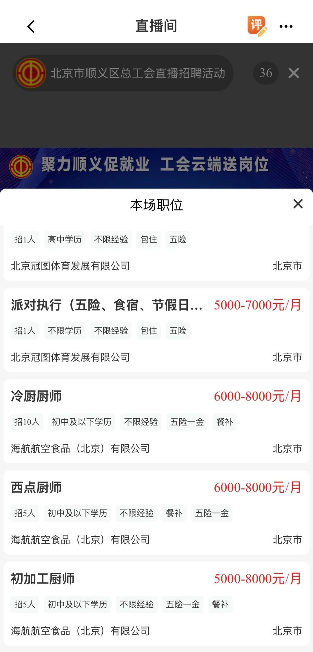 求职者后续可通过“职工之家”APP首页的“就业服务”——“就业直播”选择“北京市顺义区总工会直播招聘活动”观看直播回放或后续直播。