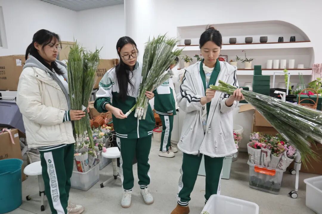 3月2日至6日,园林学校花艺设计与制作专业持续深化校企合作育人模式,将企业真实生产任务与综合实践课程、专业课程有机融合,让学生在真实岗位情境中提升专业技能。课堂上,企业教师与专任教师指导学生系统完成花束设计制作、单枝花精致包装、花材保鲜保水以及花材分拣分发等实操项目,累计完成单枝花制作1000余枝。