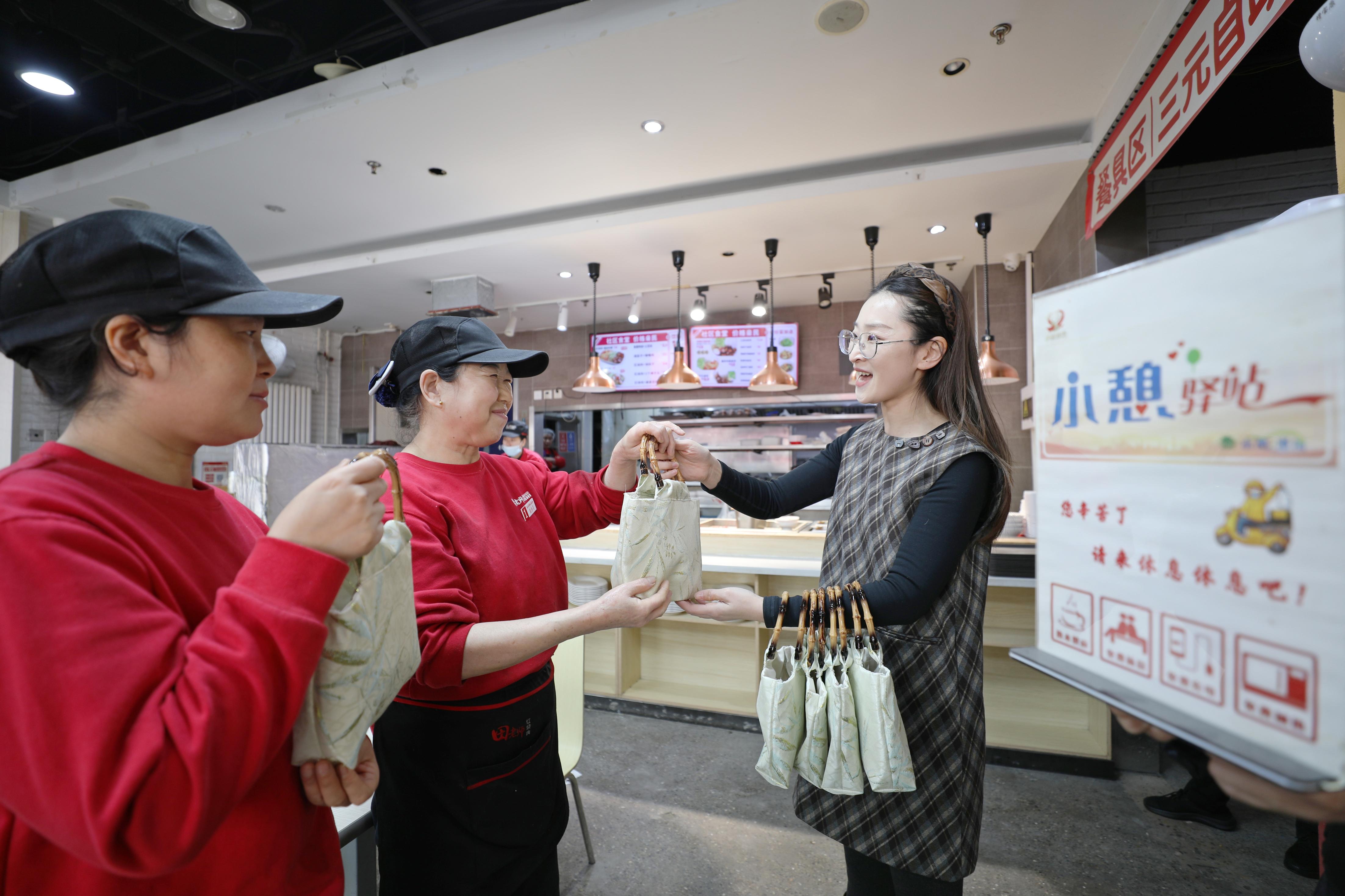 同时,街道党群服务中心的工作人员带着手工制作的竹节包,马不停蹄地来到辖区内的“小憩驿站”服务点。这些服务点是平日里为快递外卖骑手等户外劳动者提供饮水、充电、休憩的“温馨港湾”,而在这里默默坚守岗位的女职工们,则是保障驿站正常运转、传递温暖服务的“幕后英雄”。她们日复一日,用细致与耐心,为奔波的骑手们营造了一个个可以停靠的“家”。
