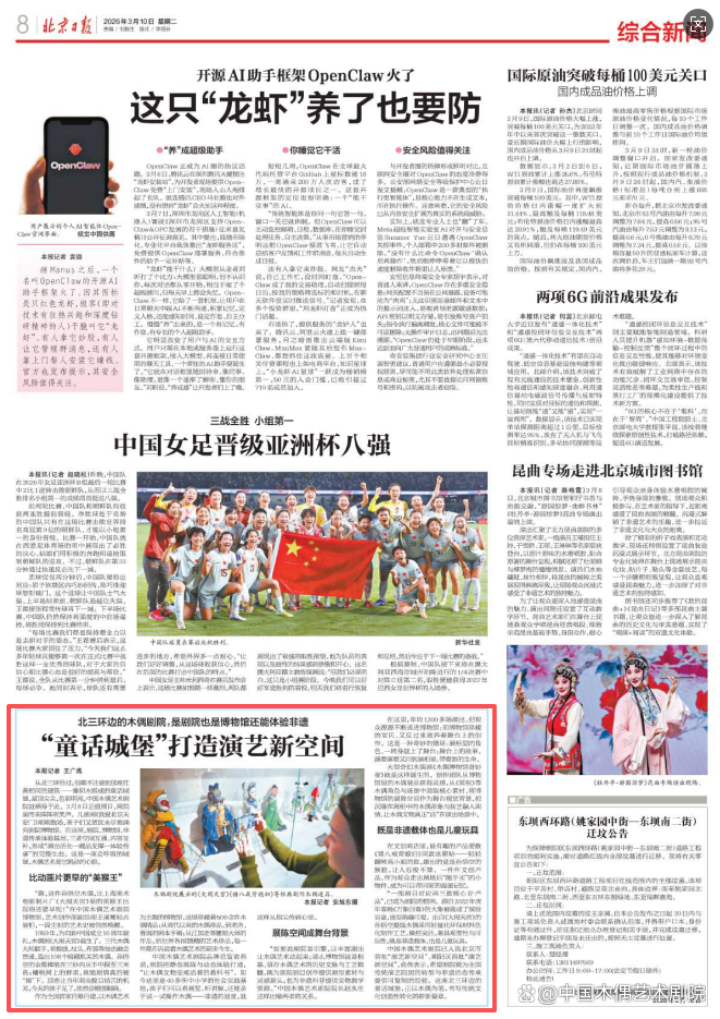日前,北京日报聚焦中国木偶艺术剧院,报道了这座北三环边的 “童话城堡” 如何以剧院、博物馆、非遗传承体验基地三位一体的模式,打造演艺新空间,让木偶艺术在传承中创新,在创新中焕发生机。这座红黄相间、尖顶错落的建筑,不仅是孩子们的快乐天地,更是木偶非遗活态传承的重要阵地,以 “演出活化 — 藏品支撑 — 体验传承” 的完整生态,书写着传统文化创造性转化的崭新篇章。全文如下: