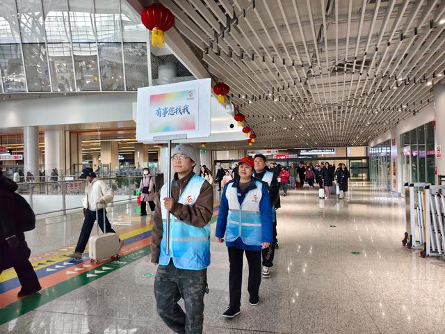 除流动服务力量外,科学调整3个固定志愿服务点位,精准布局至铁路出站口及城市通廊安检关键位置,实现出站客流全覆盖、服务无死角。各点位均配备彩虹指引条、便民服务双语十五问手册,清晰标注换乘路线、便民设施位置等旅客高频咨询内容,让服务更贴心、更高效。“协助旅客指引路线、帮扶重点乘客,我亲眼见证了站区的高效运营。干净的环境、清晰的标识和工作人员的认真负责,都让我深受触动,真切体会到志愿服务的意义。”北京联合大学志愿者唐思佳说道。
