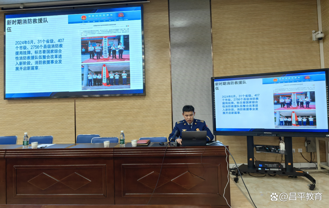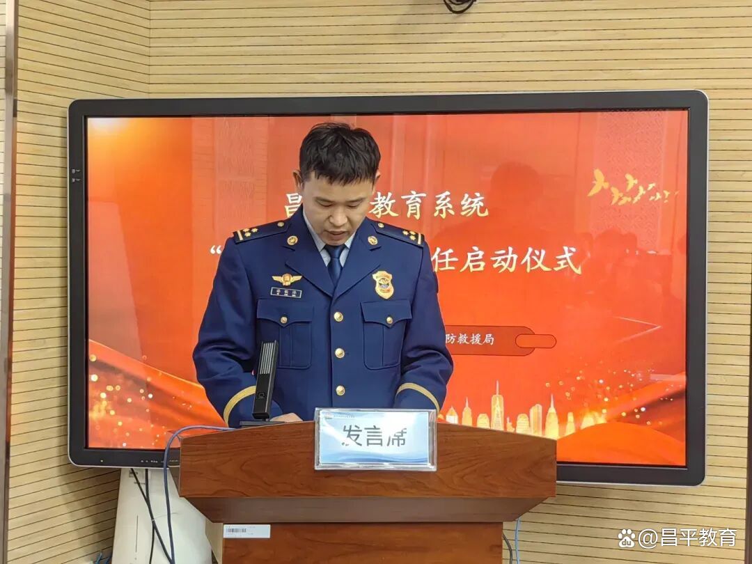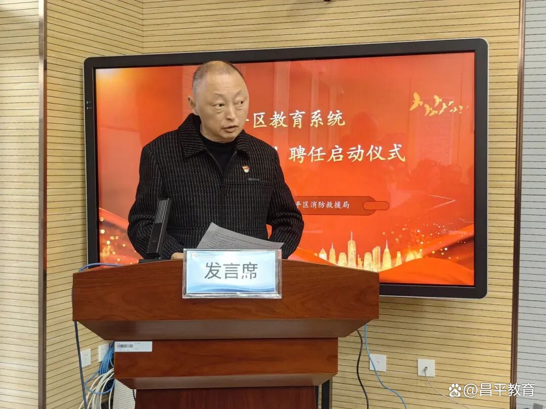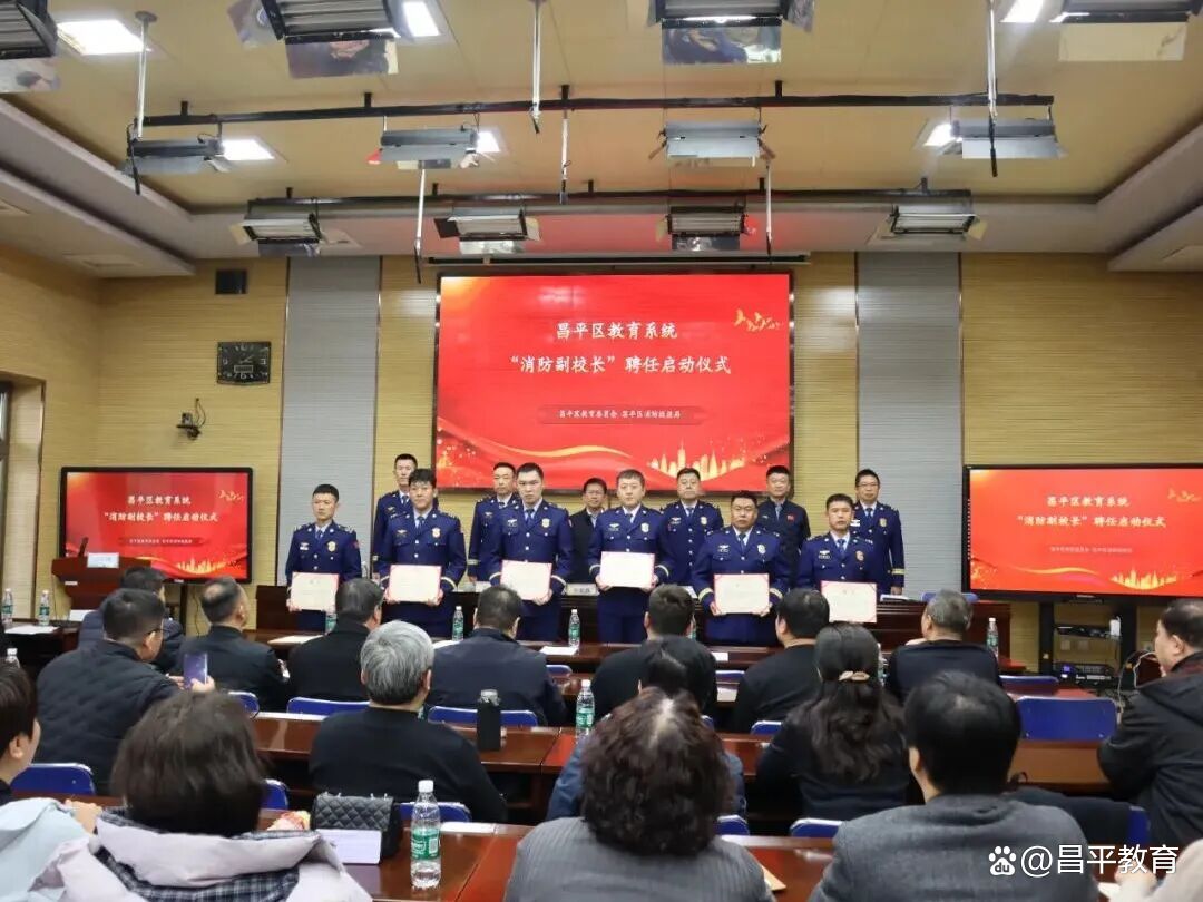 为深入贯彻落实《北京市消防条例》及安全宣传“五进”工作部署,健全完善校园消防安全责任体系,昌平区教育委员会与昌平区消防救援局联合召开基础教育系统“消防副校长”聘任启动会。区消防救援局局长石逢军、政委王凡,区委教育工委副书记、区教委主任张友鑫,区教委副主任刘健鹏出席会议,区消防救援局相关业务骨干,全区各公办、民办学校及幼儿园校(园)长参加活动,仪式由王凡主持。