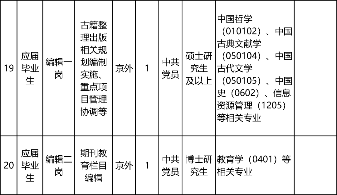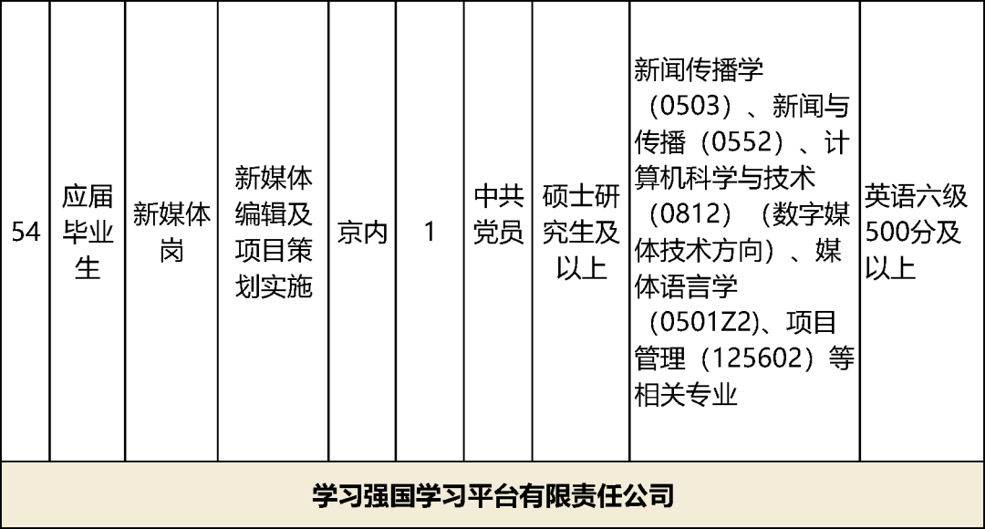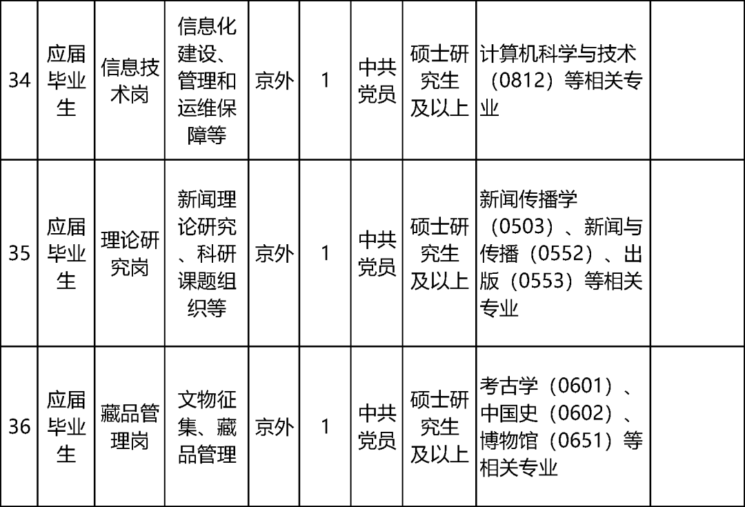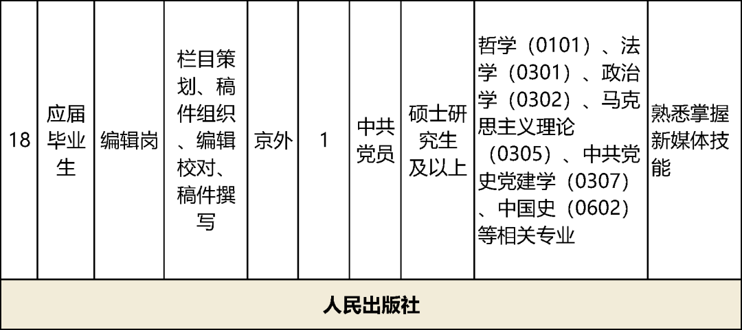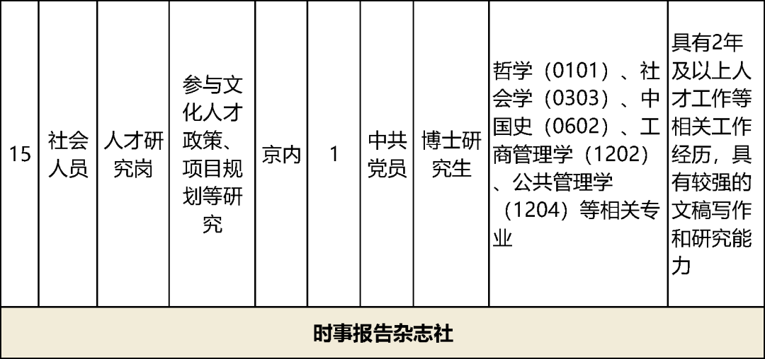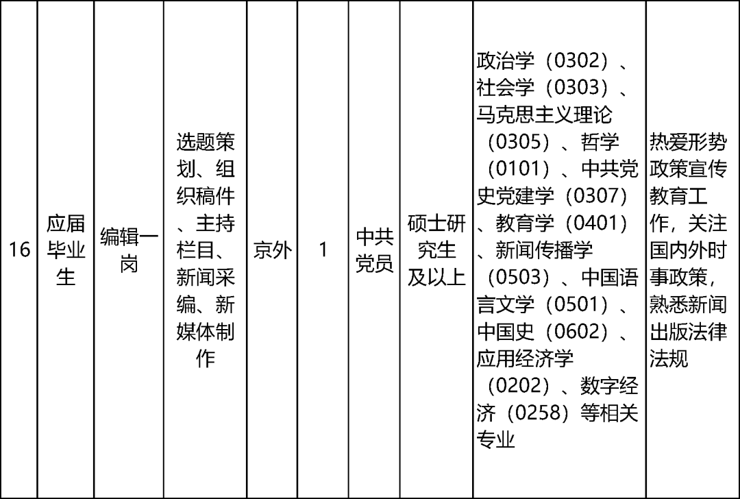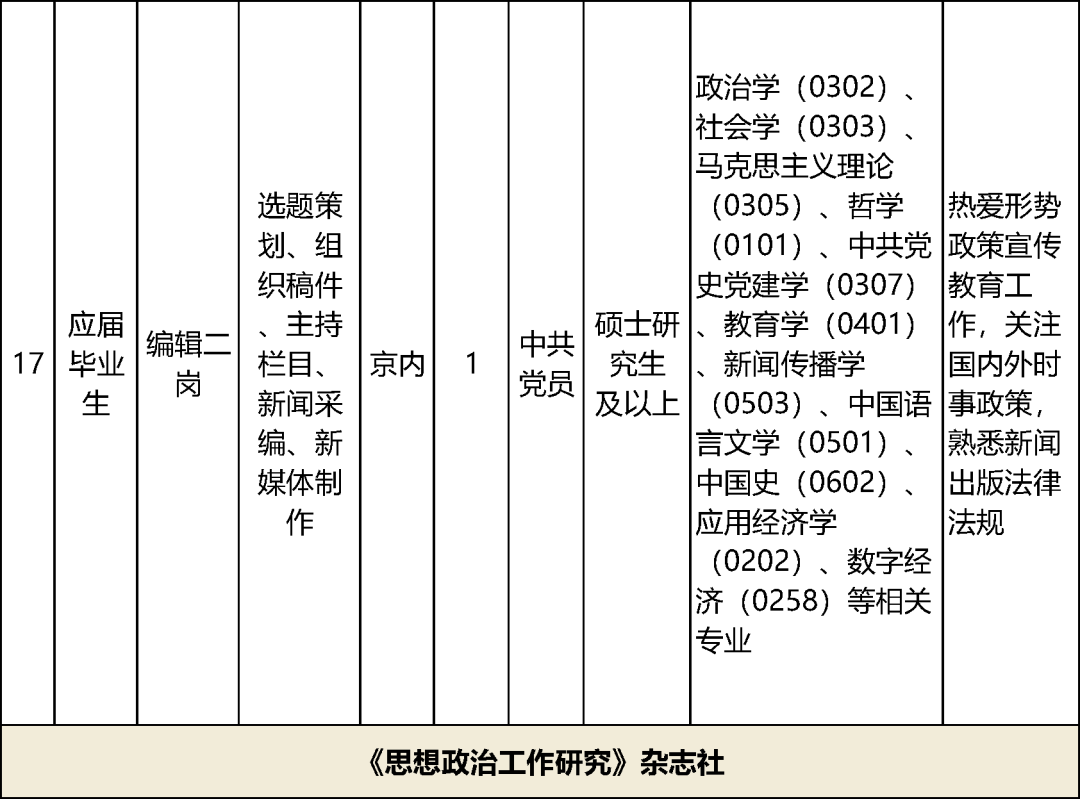 17家中央宣传部直属单位计划招聘60名工作人员,具体岗位及资格条件详见下表。