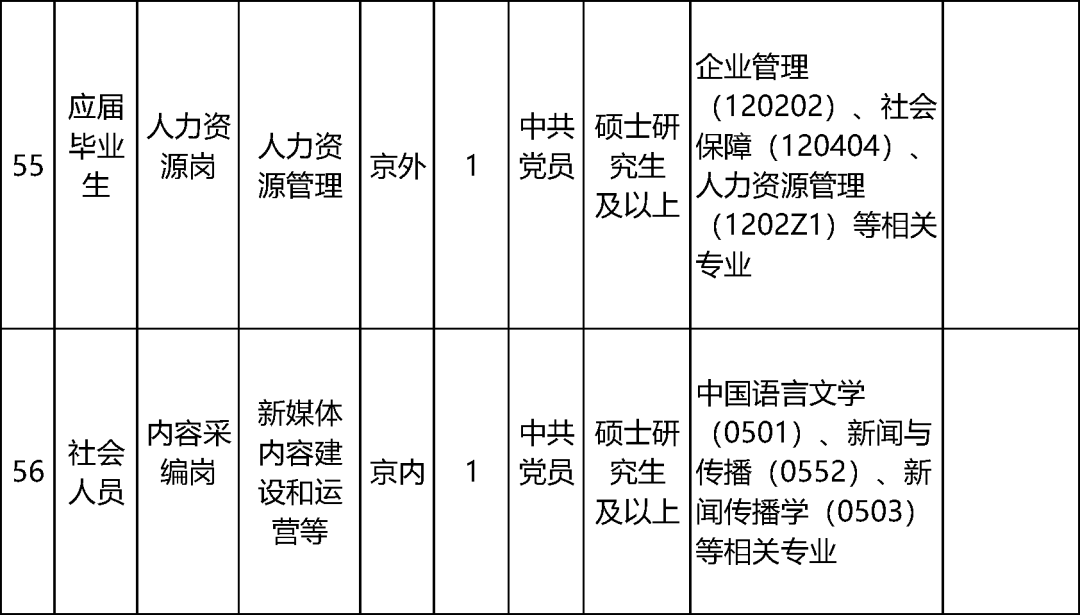 应聘人员毕业时已取得与最高学历对应的学历学位证书;岗位要求的专业条件为应聘人员已获得的最高学历对应专业。社会人员需具有北京市常住人口户籍。