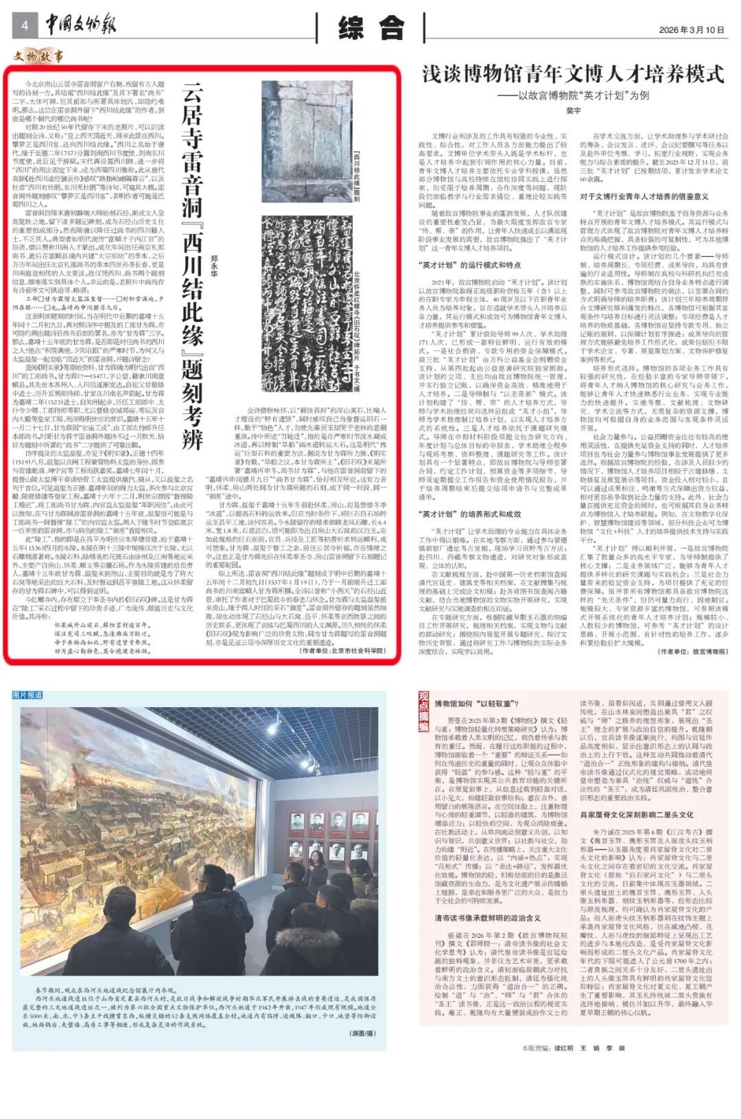 《中国文物报》最新刊载云居寺雷音洞外“西川结此缘”的题刻考辨