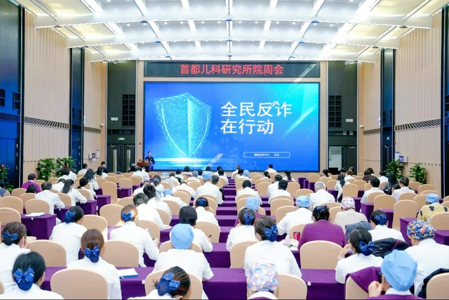为落实好法治医院建设要求,进一步提升干部职工法治意识和法律观念。2026年3月9日,首都儿科研究所特邀北京市公安局朝阳分局刑侦支队民警王警官进行反诈宣传专题培训,全体班子成员、党支部书记、中层干部、护士长及部分党员骨干近200人参加培训。