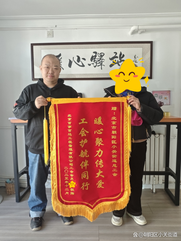 一面印着“暖心聚力传大爱,工会护航伴同行”的锦旗,被郑重送到小关街道总工会工作人员手中。这份来自北京百事百达工程管理有限公司工会会员的谢意,承载着职工对“娘家人”的信赖,更见证了街道总工会精准帮扶、纾困解难的担当。