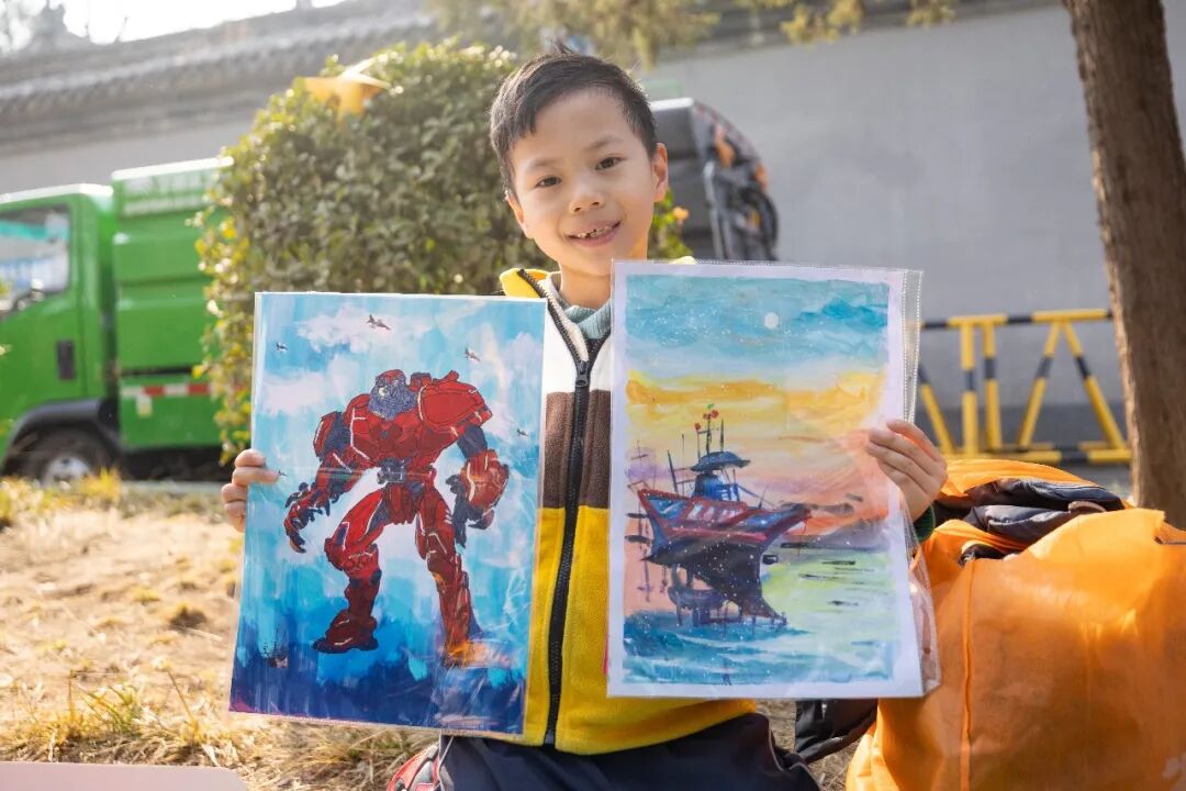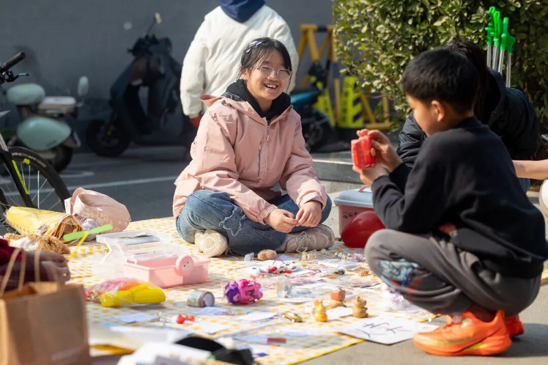 颁奖仪式结束后,跳蚤市场活动正式开始。同学们按序号有序布设摊位,玩偶、手作饰品、文具、手写福字等物品整齐陈列,每件商品都承载着孩子们的心意。大家化身“小摊主”,热情向过往行人介绍物品:“这个玩偶是我亲手做的,戴着红领巾,象征着袁满囤叔叔的奉献精神。”稚嫩的话语传递着敬意,家长与志愿者在旁协助维持秩序,现场氛围温馨有序。过往居民纷纷驻足选购,用实际行动助力红色守护行动。